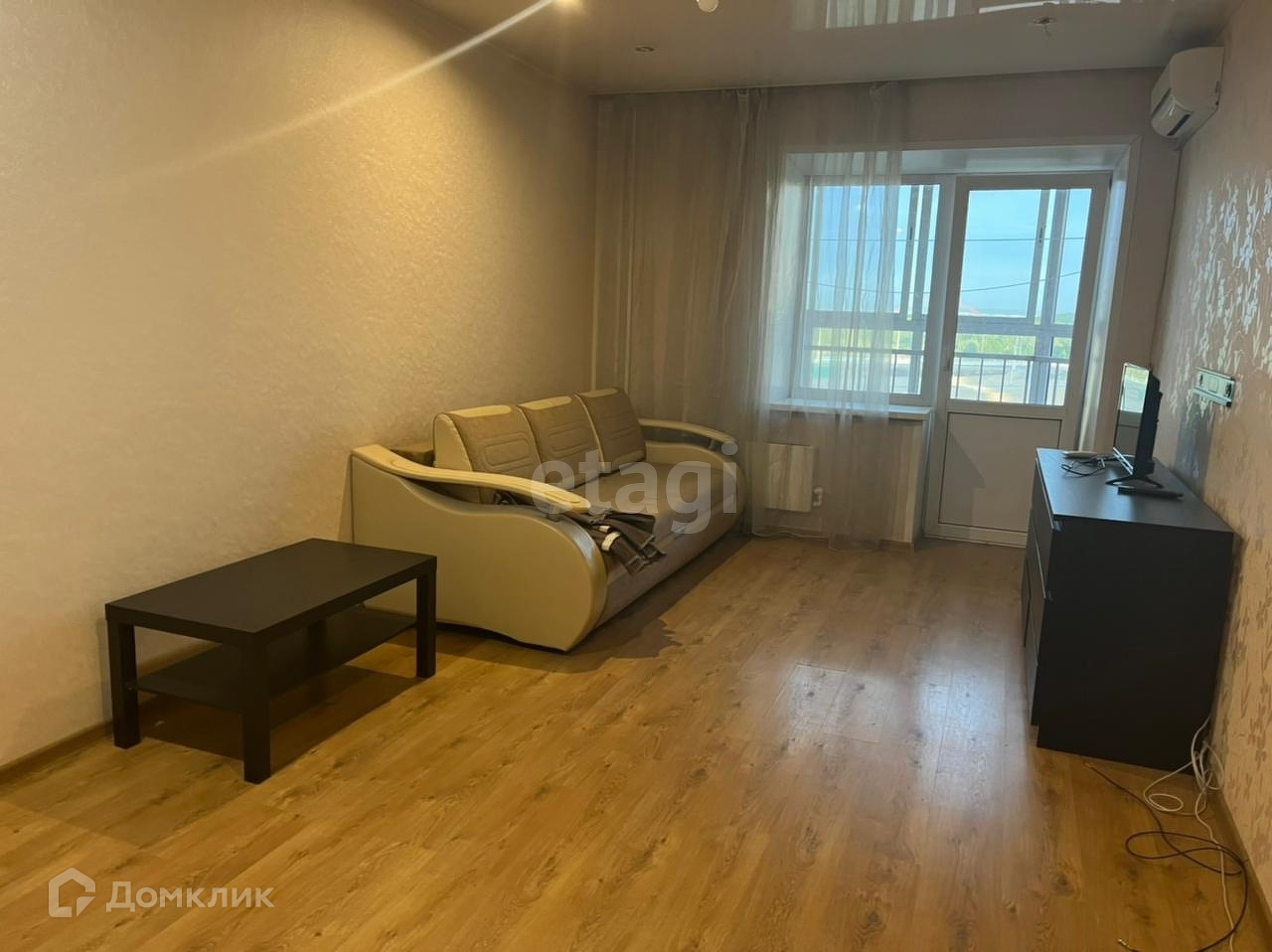- Гостиная: Уютный диван, журнальный столик, телевизор. Выход на застеклённый балкон.