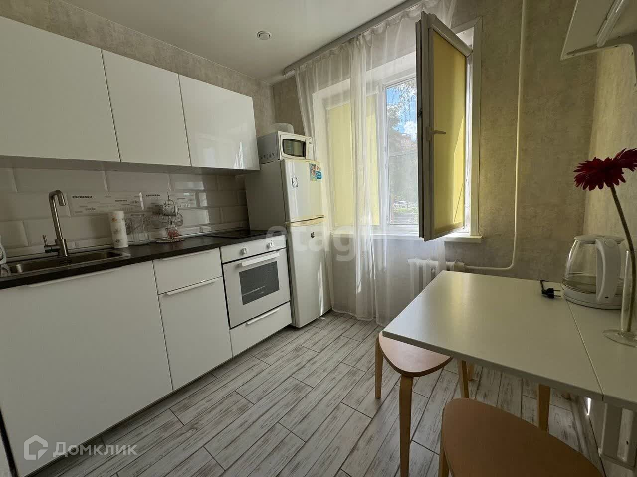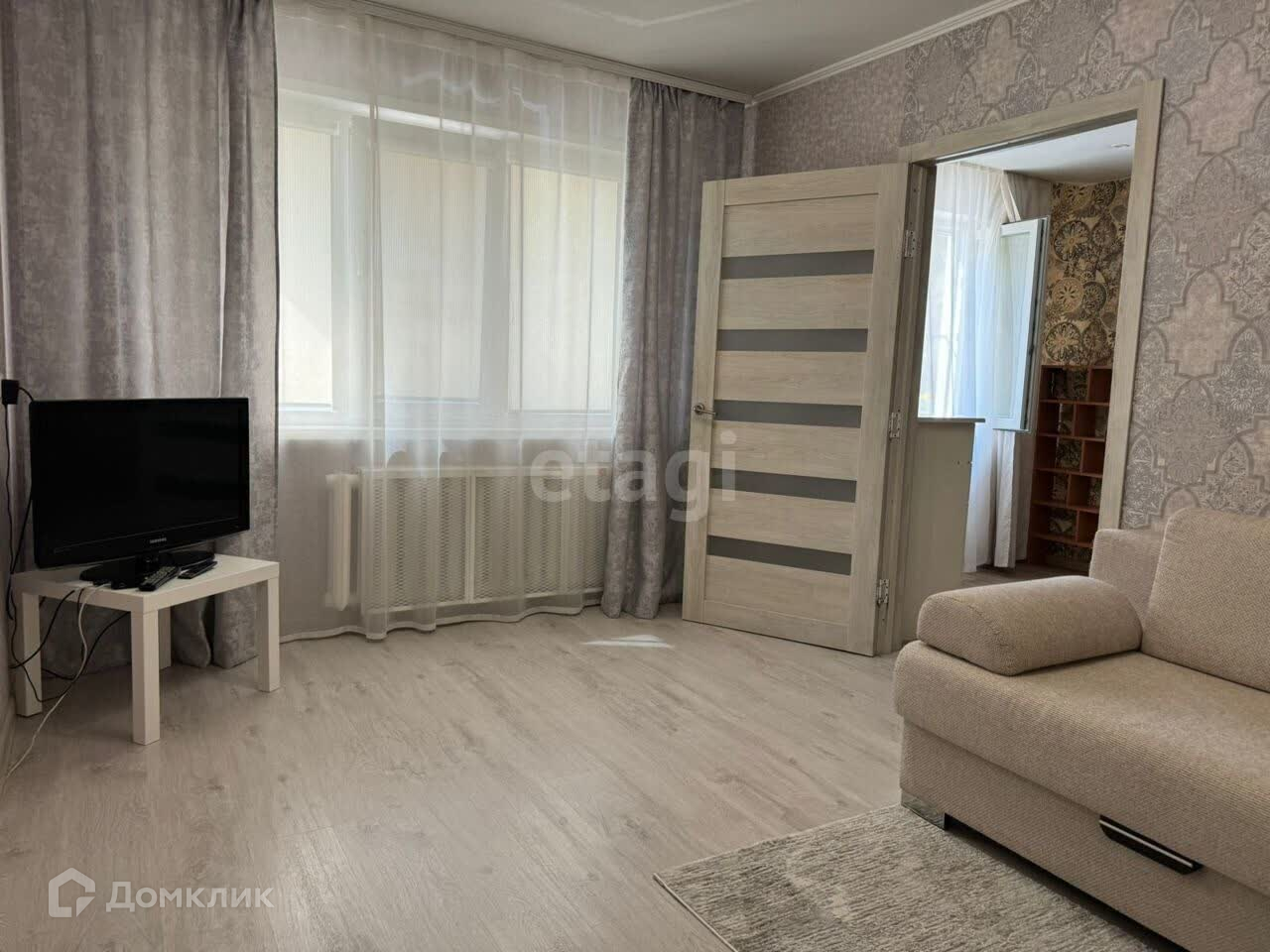 В квартире есть все для проживания: 2-спальных места, холодильник, телевизор, кухонный стол, кухонный гарнитур.
