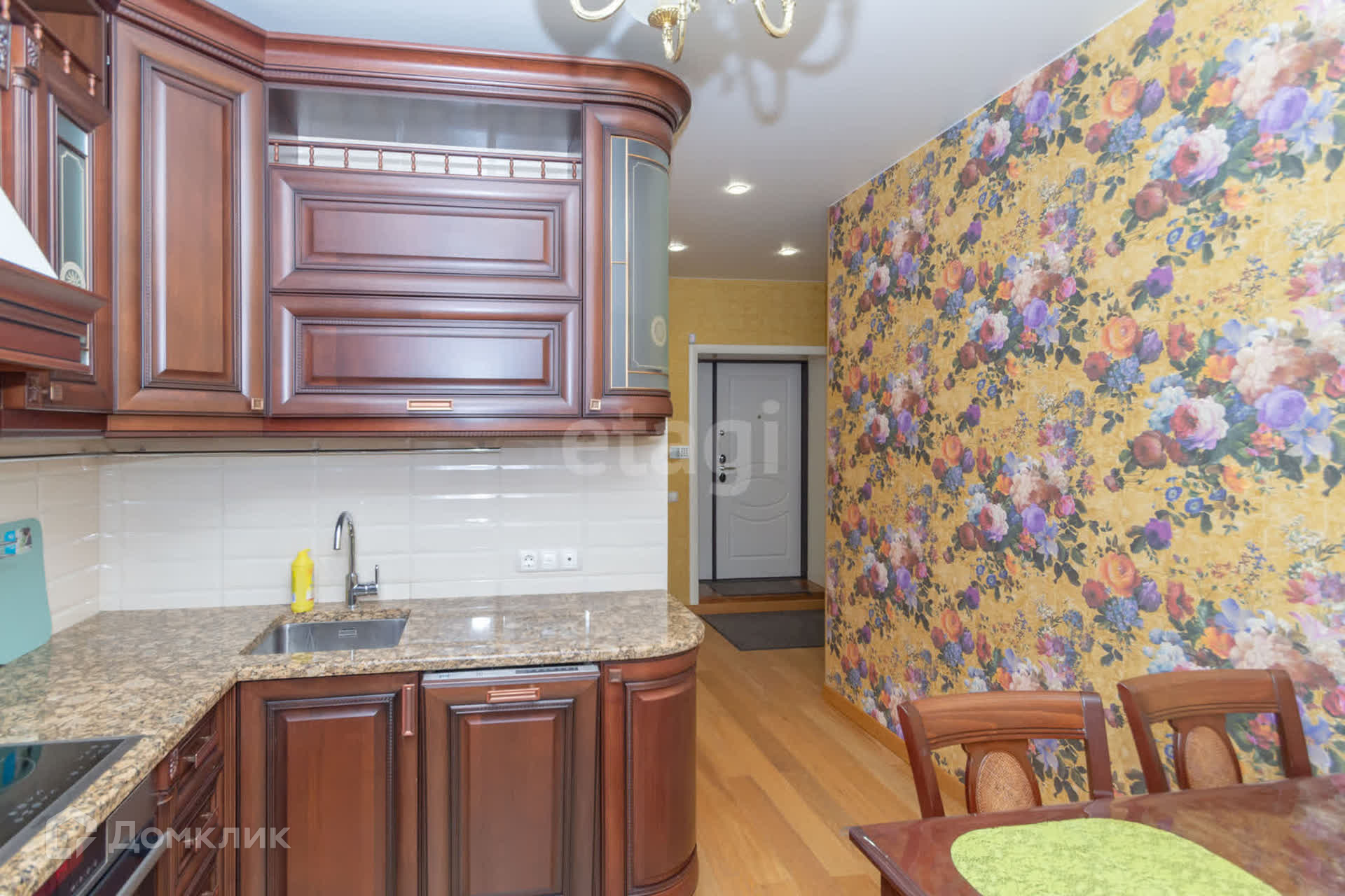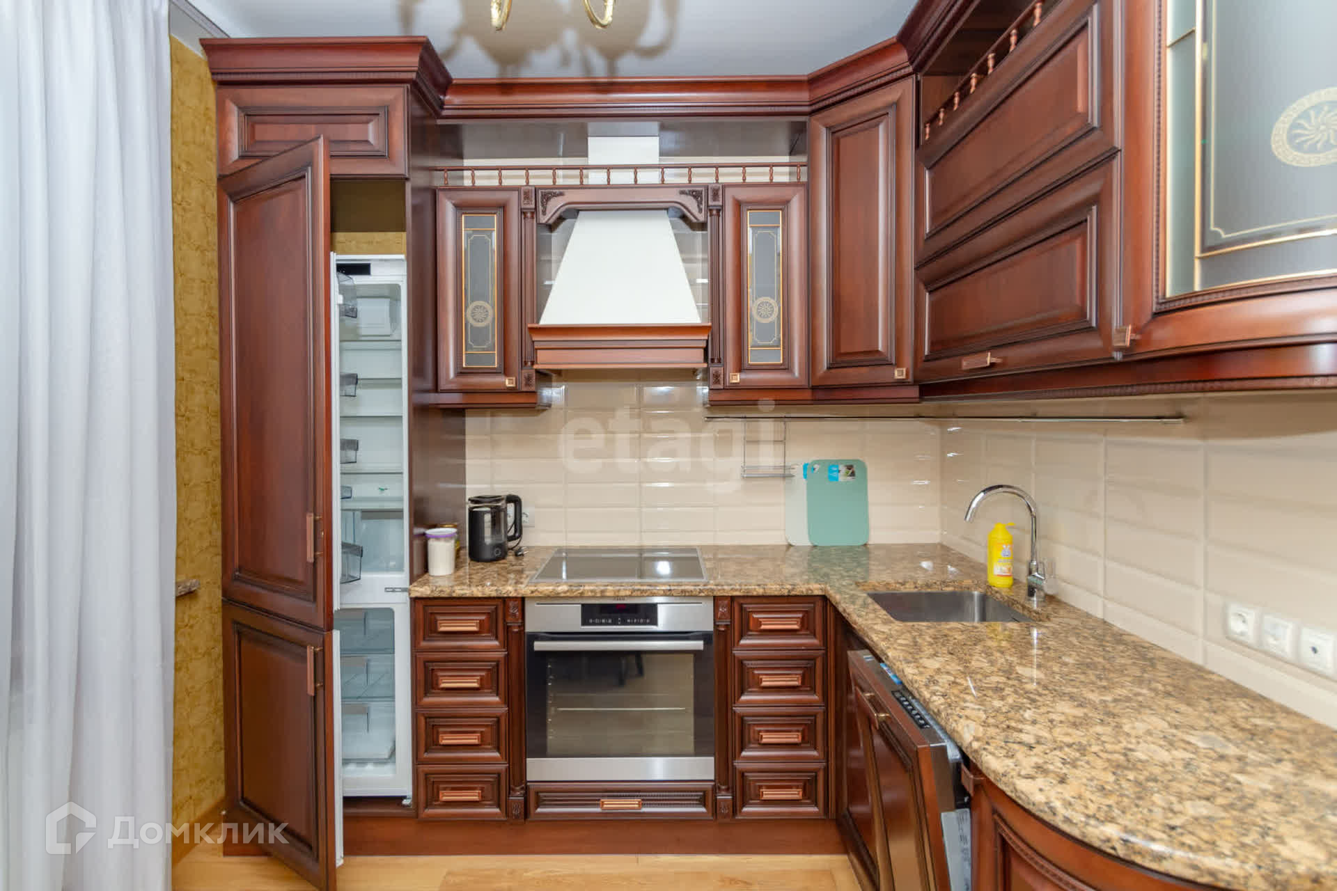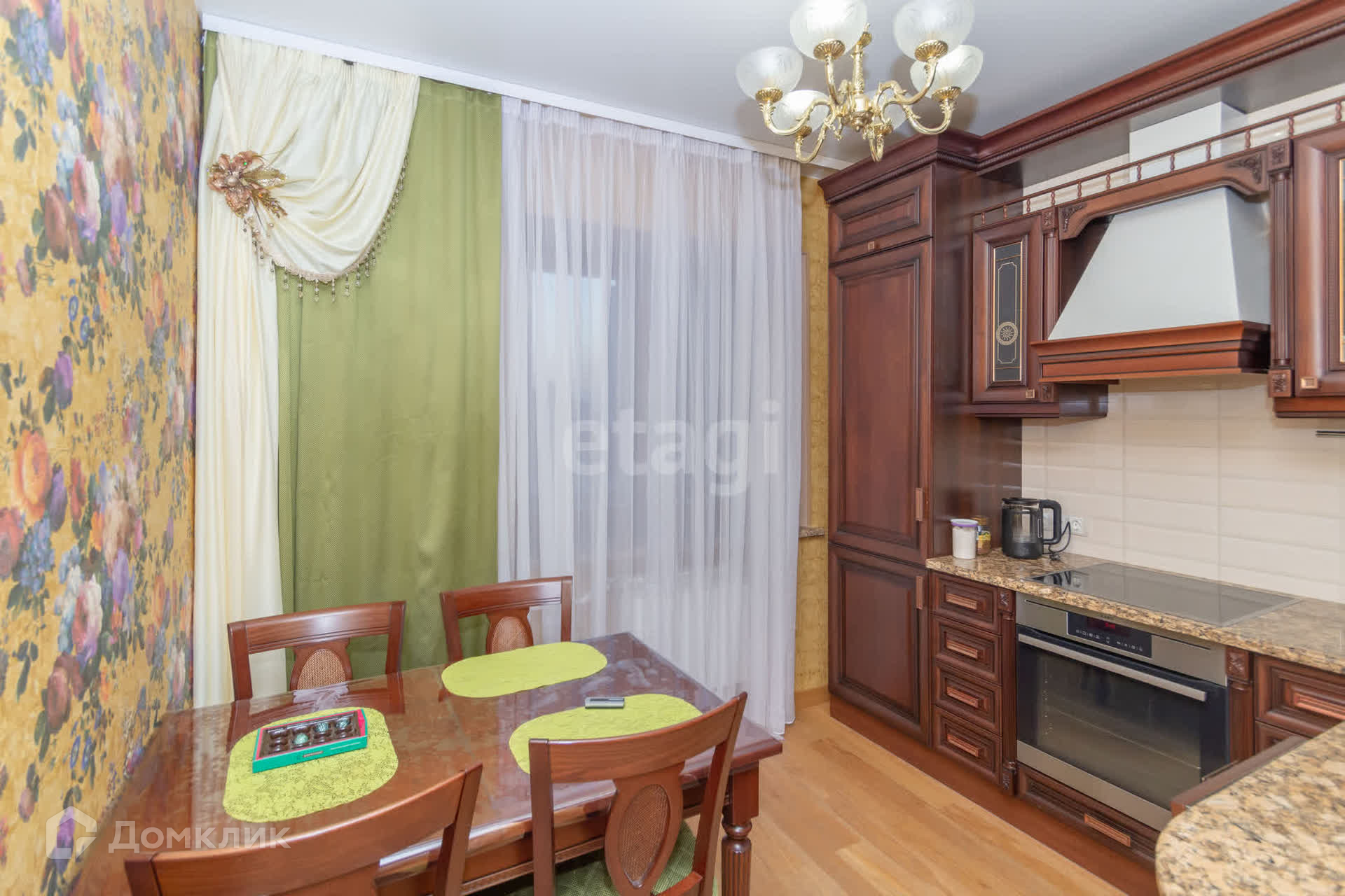 Деревянные евро окна, каменные подоконники, достойный кухонный гарнитур со столешницей из натурального камня. Напольное покрытие-паркетная доска из дерева.