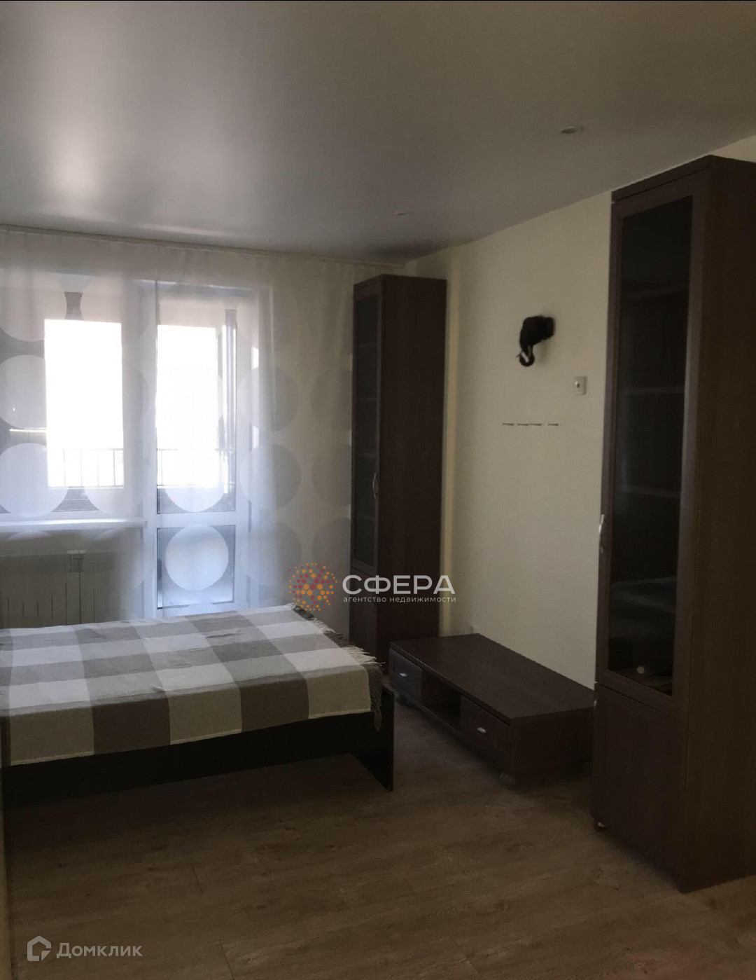 - Из мебели имеется: кровать, шкафы, кухонный гарнитур;