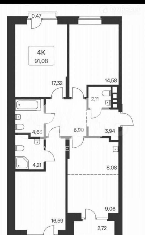 Общая площадь 86 м2