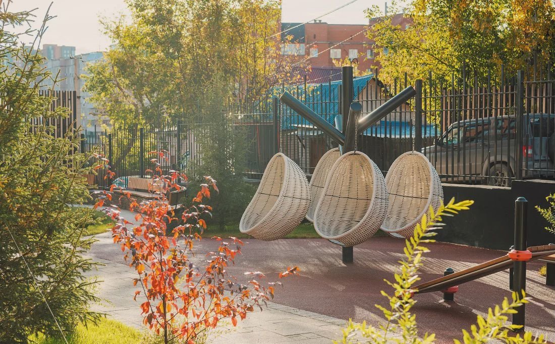 Под благоустройство и озеленение отведен внутренний двор, на котором расположены зоны для активных игр, занятий спортом и тихого отдыха.
