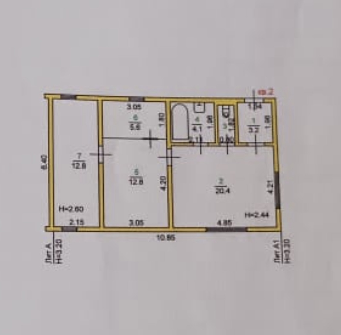 Высота потолков 2.5 м