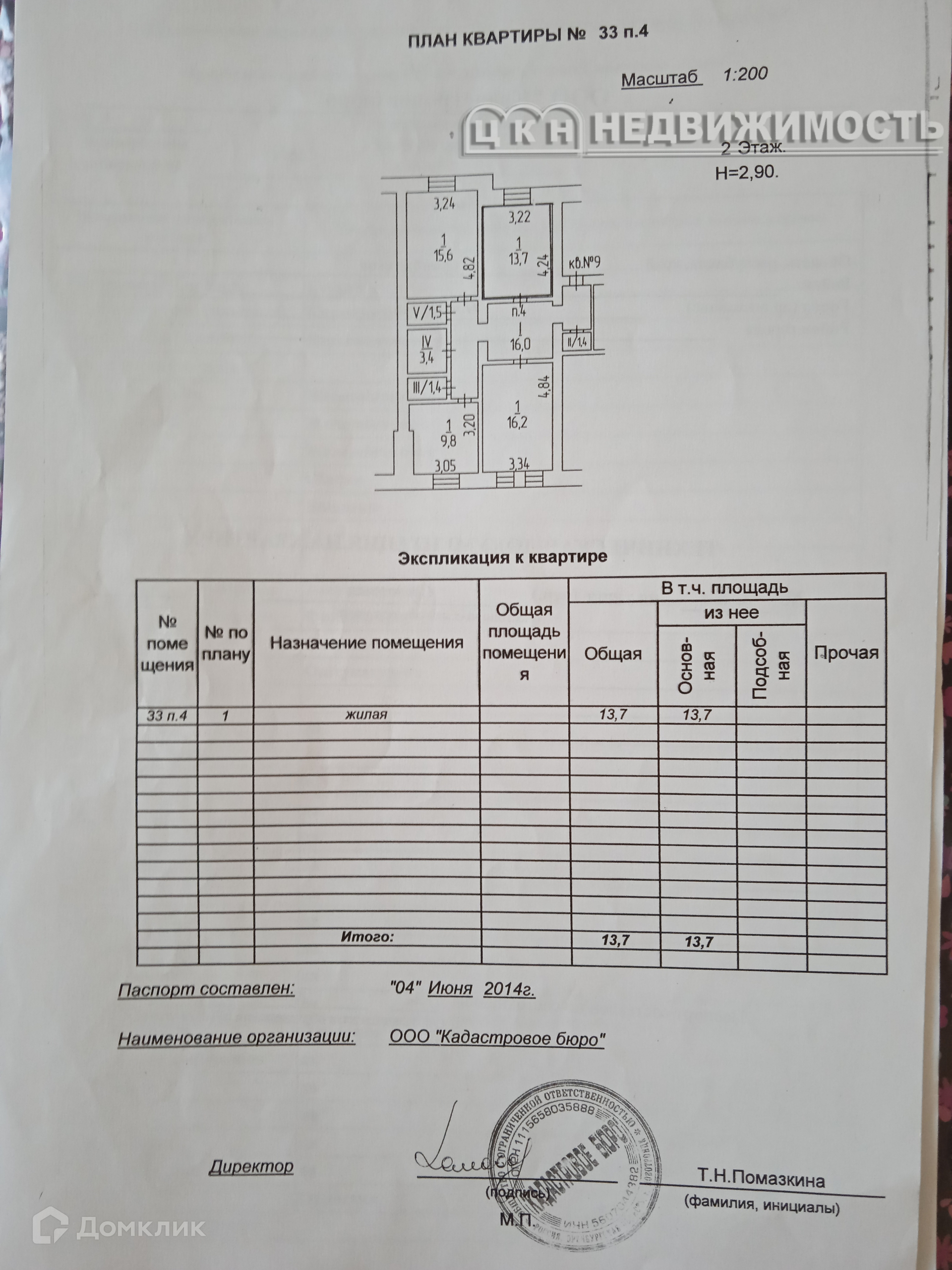 Жилая площадь 13.7 м2