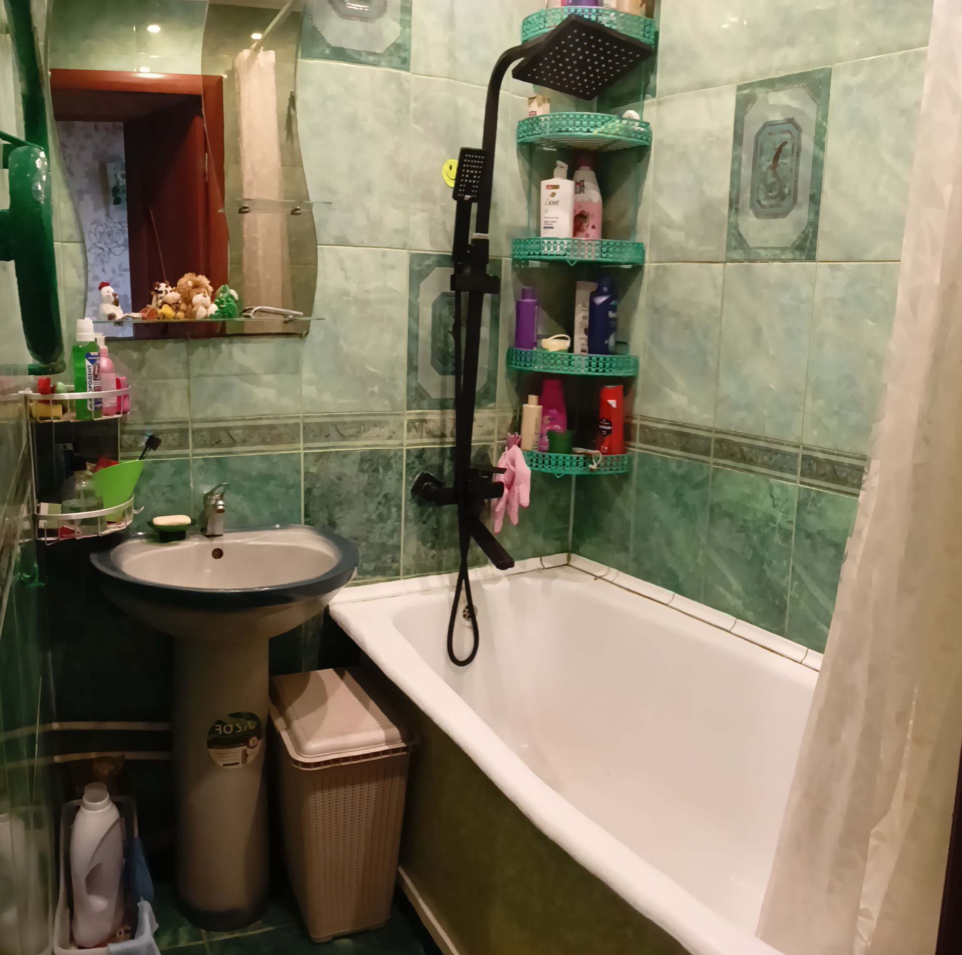 - Санузел раздельный, в изумрудном кафеле, тропический душ.
