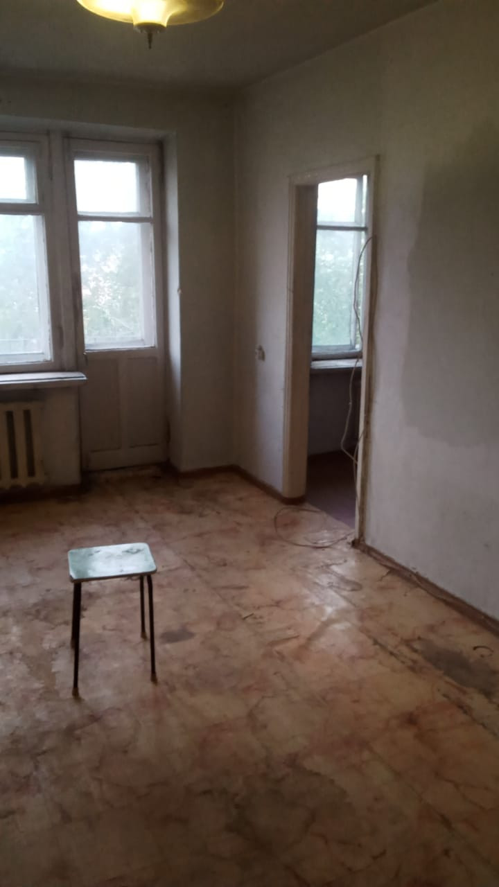 В квартире требуется ремонт. Установлены деревянные окна, пластиковые трубы. В квартире есть кладовка-гардеробная. Зал проходной. С/У совмещён. Балкон не застеклён.
