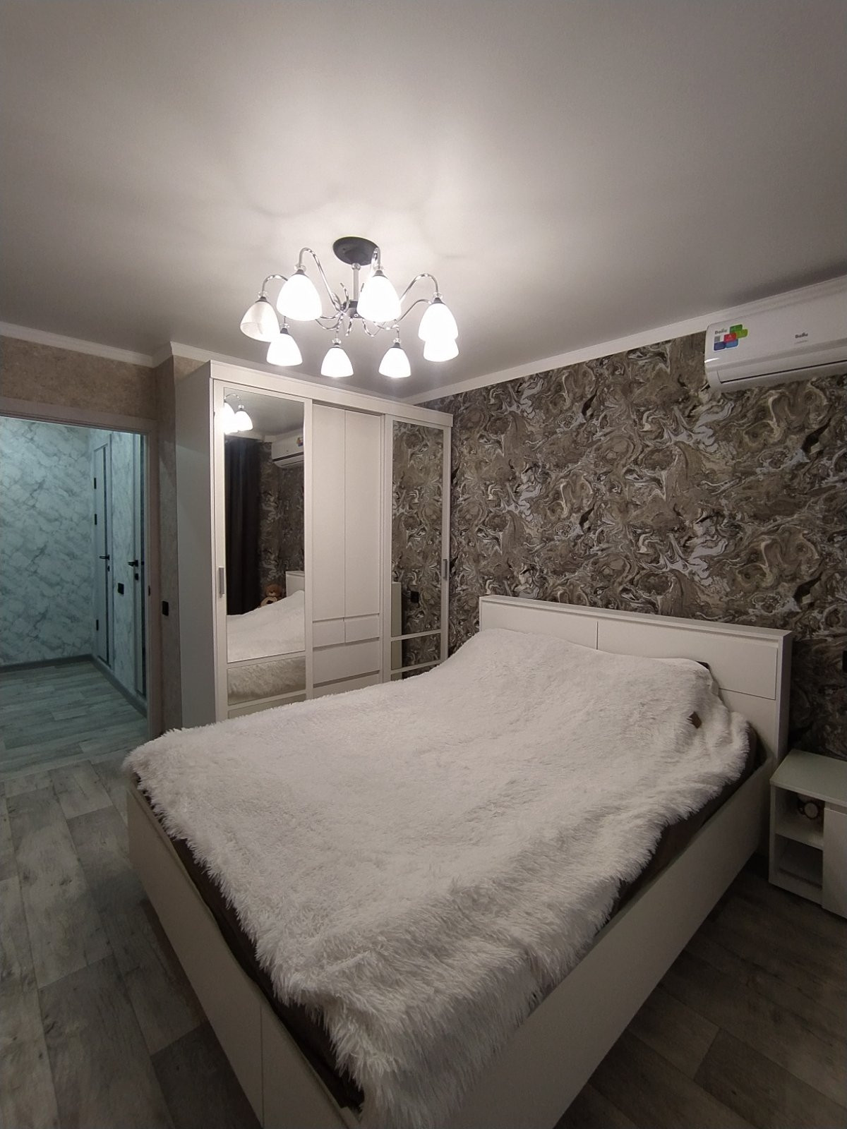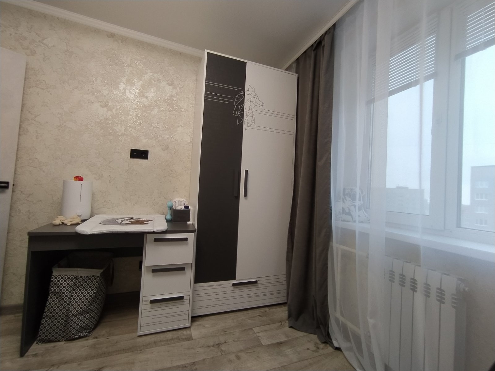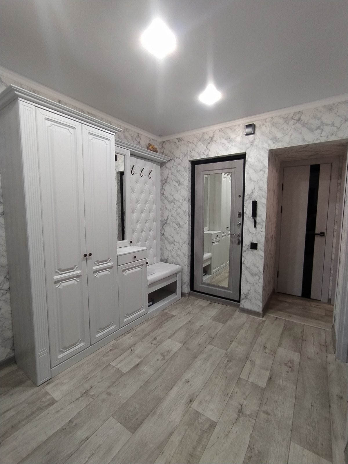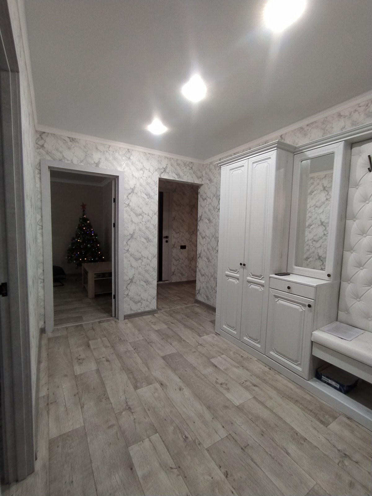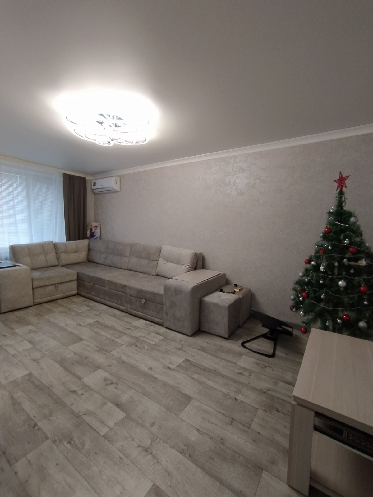 В квартире выполнен свежий, качественный, из дорогих материалов, ремонт, в августе этого года. Проводка заменена на медную, стены выровнены, идеально оклеены обоями, в сетлых, спокойных тонах. Батареи заменены -на новые чугунные, с кранами. Имеется водонагреватель. Потолки натяжные, балкон - евроотделка, большой, как отдельная комната.В квартире приятная атмосфера, пахнет новым ремонтом и мебелью, которую недавно приобрели и оставляют в подарок новым владельцам. Так же остаётся вся бытовая техника, кроме телевизора, Всё на гарантии! Новый кухонный гарнитур с посудомойкой, варочной панелью, духовым шкафом. Виды из окон - во двор, с другой стороны на Аллею славы! Общий коридор тоже с ремонтом!