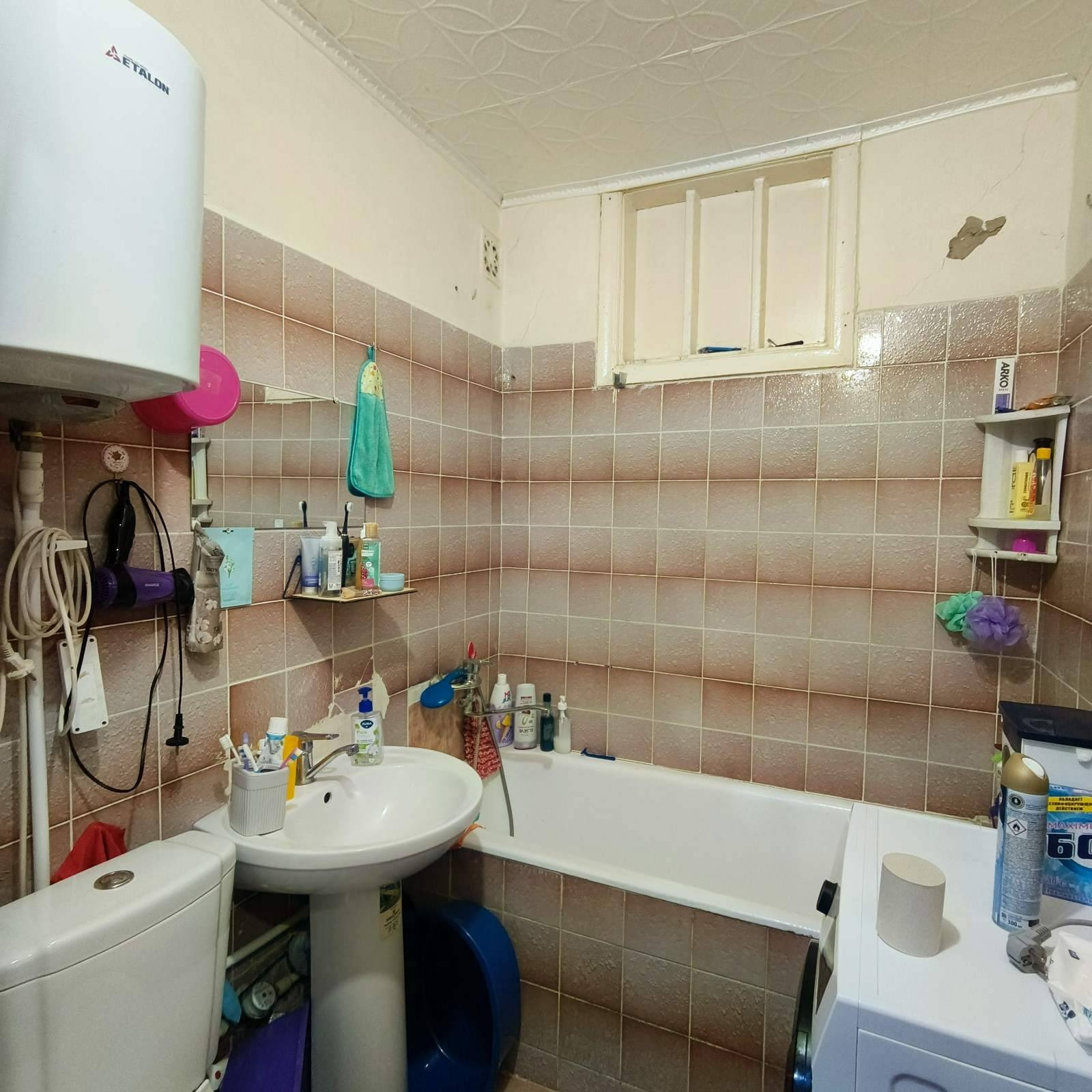 -Дом кирпичный 1964 года постройки, окна ПВХ, балкон застеклён ПВХ, сан. узел совмещён, трубы ПВХ, потолки натяжные, стены ровные, толстые, широкие подоконники, батареи чугунные. Счетчики на свет, воду.