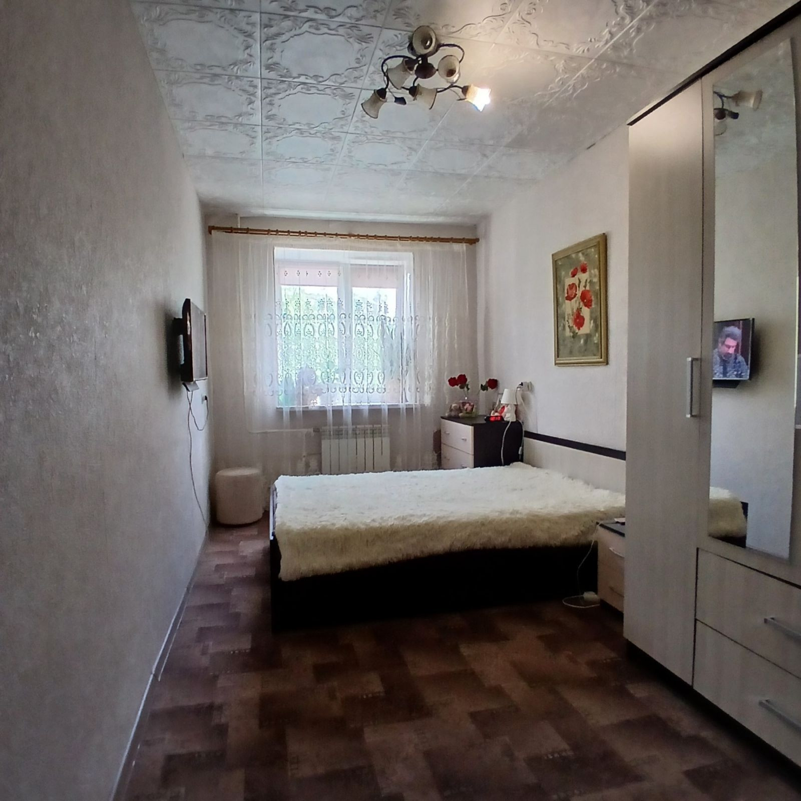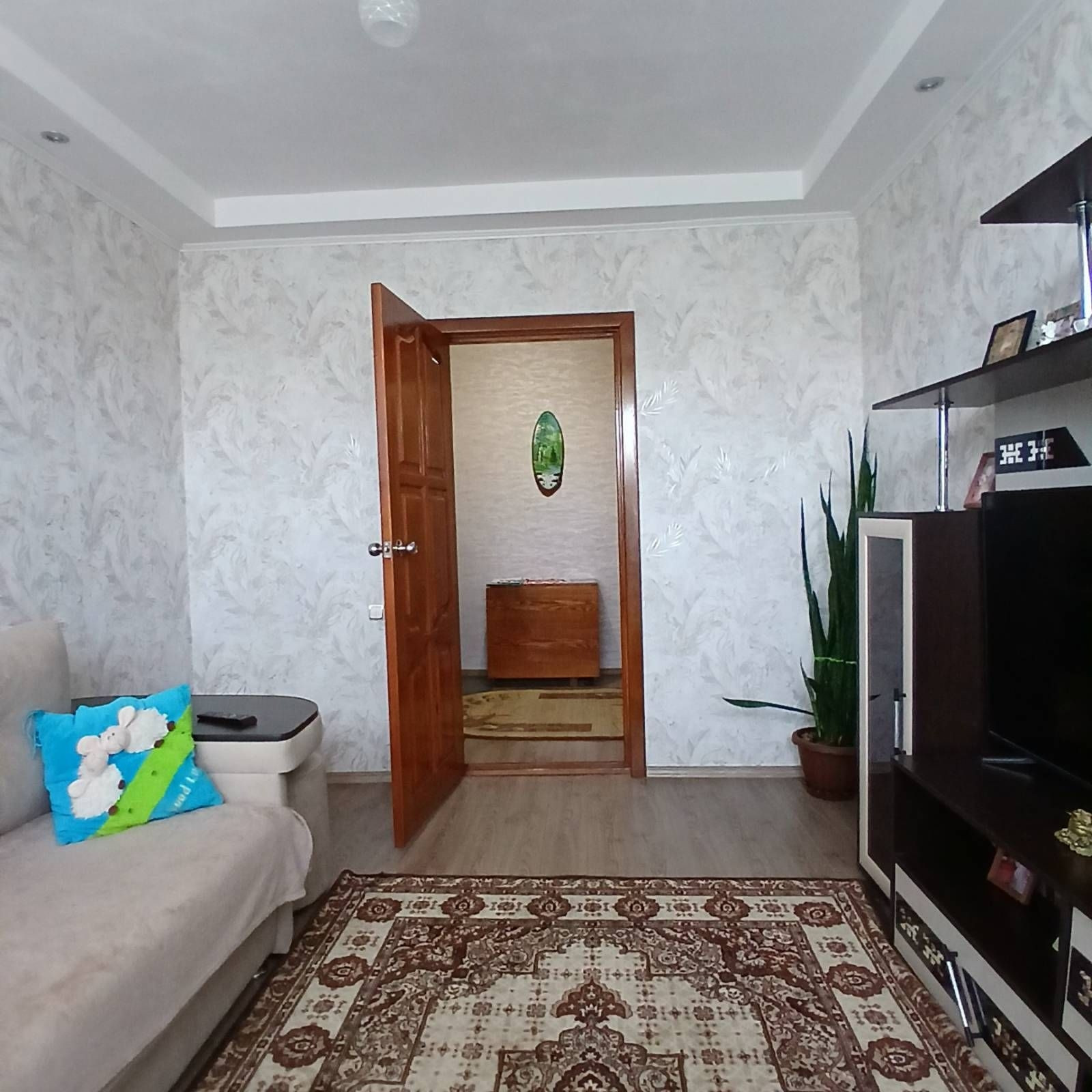 Квартира очень уютная! Теплые полы на кухне и балконе (кафель), в комнатах ламинат, окна пластиковые, биметаллические батареи, трубы ПВХ, новая входная дверь, санузел раздельный отделан кафелем, балкон застеклен. Остаётся кухонный гарнитур, кровать и шкаф в спальне.