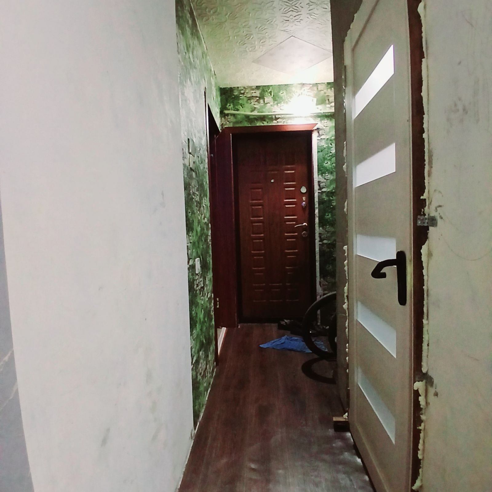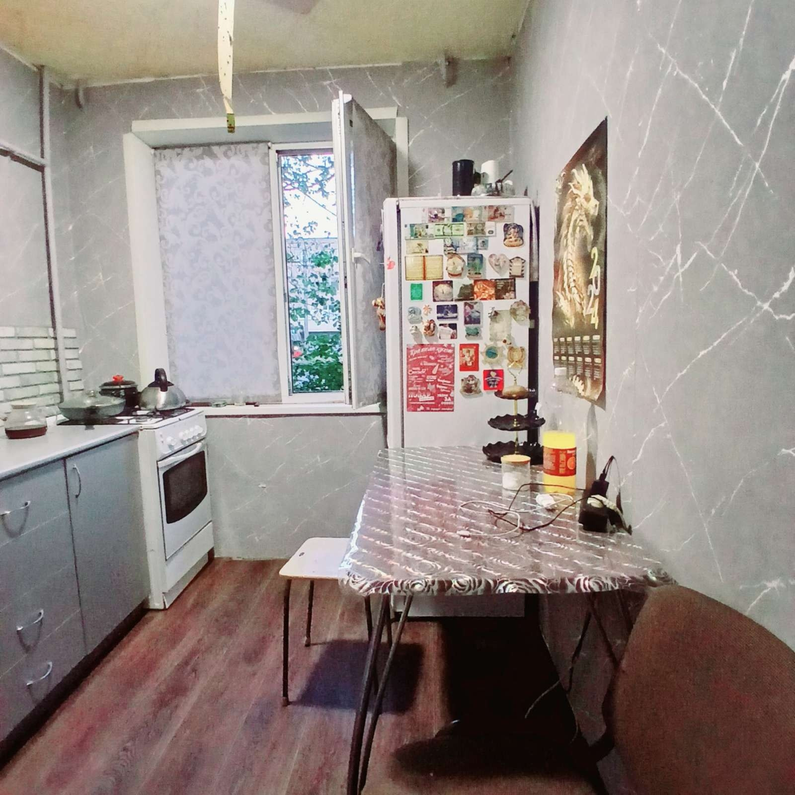 В квартире окна и трубы ПВХ; батареи чугунные, в комнате и на кухне натяжные потолки. Подвал сухой. Подъезд чистый, хороший тихий двор.