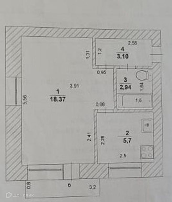 Жилая площадь 18.37 м2