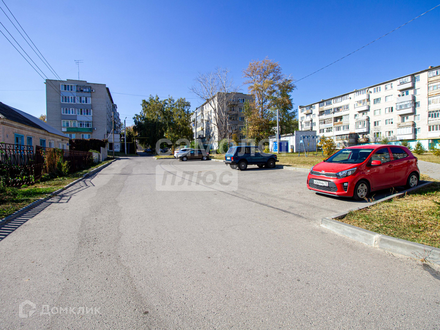 Благоустроенная придомовая территория с парковкой у подъезда.