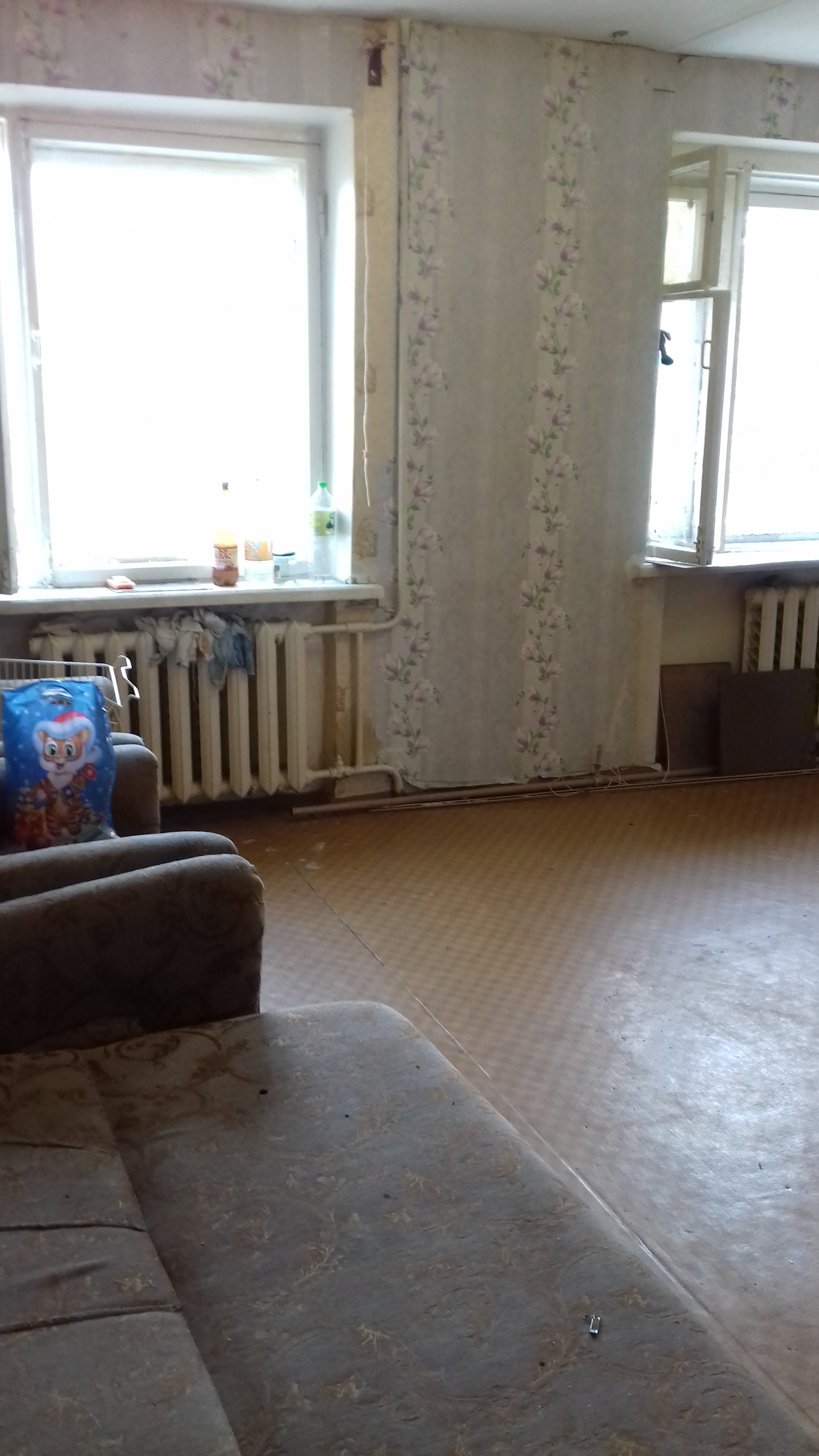 Комната гостиничного типа, большая, просторная 25 кв м, есть небольшая ниша, можно установить шкаф, тамбур на две комнаты, соседи не живут. Состояние простое, приемлемое, два окна, светлая, теплая комната, санузел, душ, кухня- на этаже. Торг обсуждается