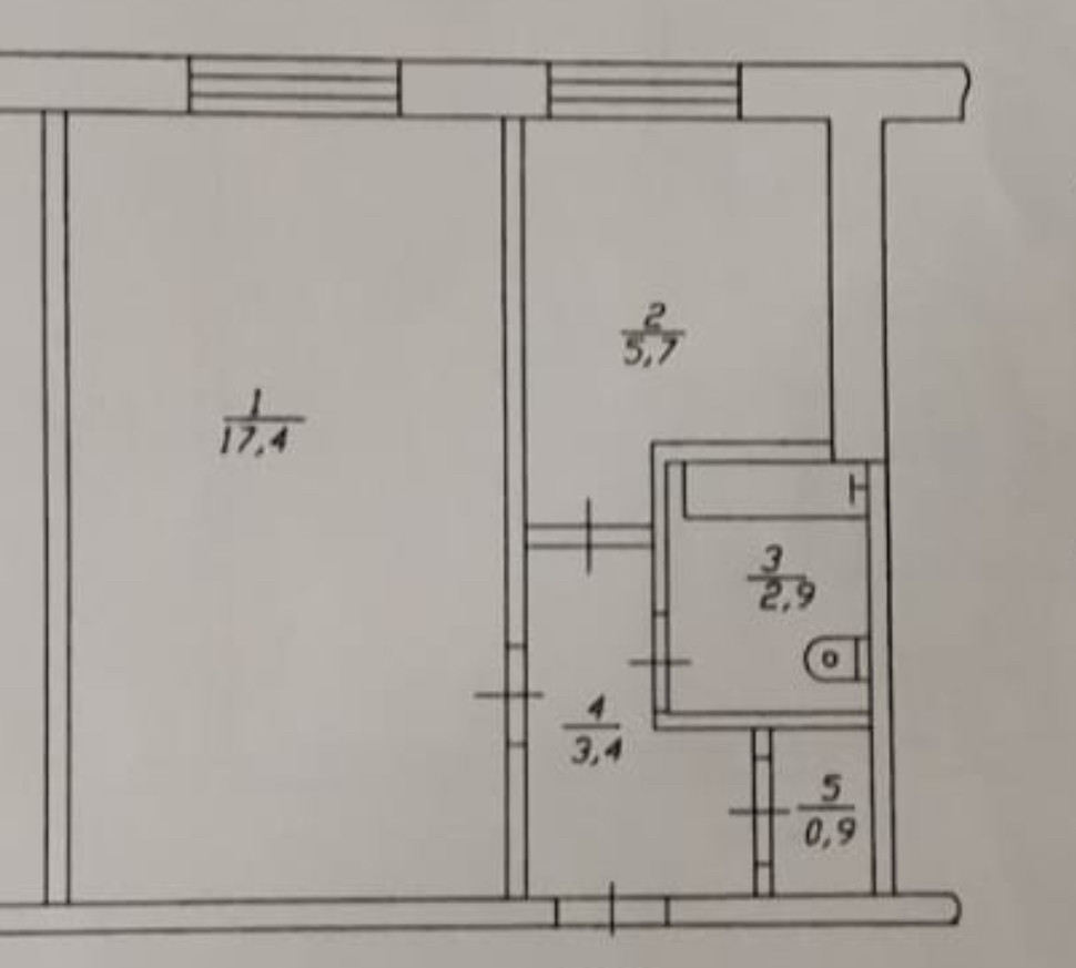 30,3 кв.м общая / 17.4 кв.м жилая / 5.7 кв.м. кухня.