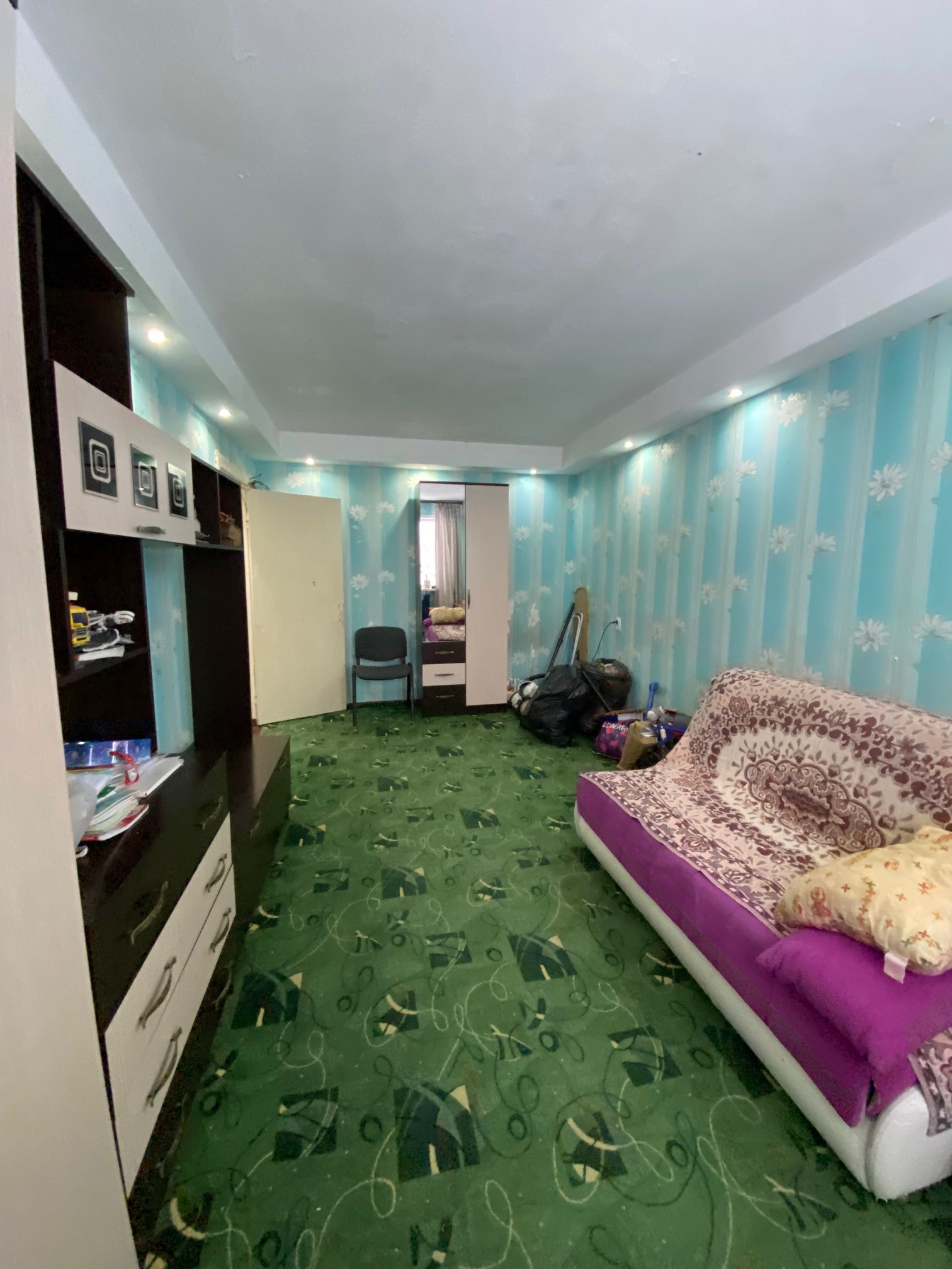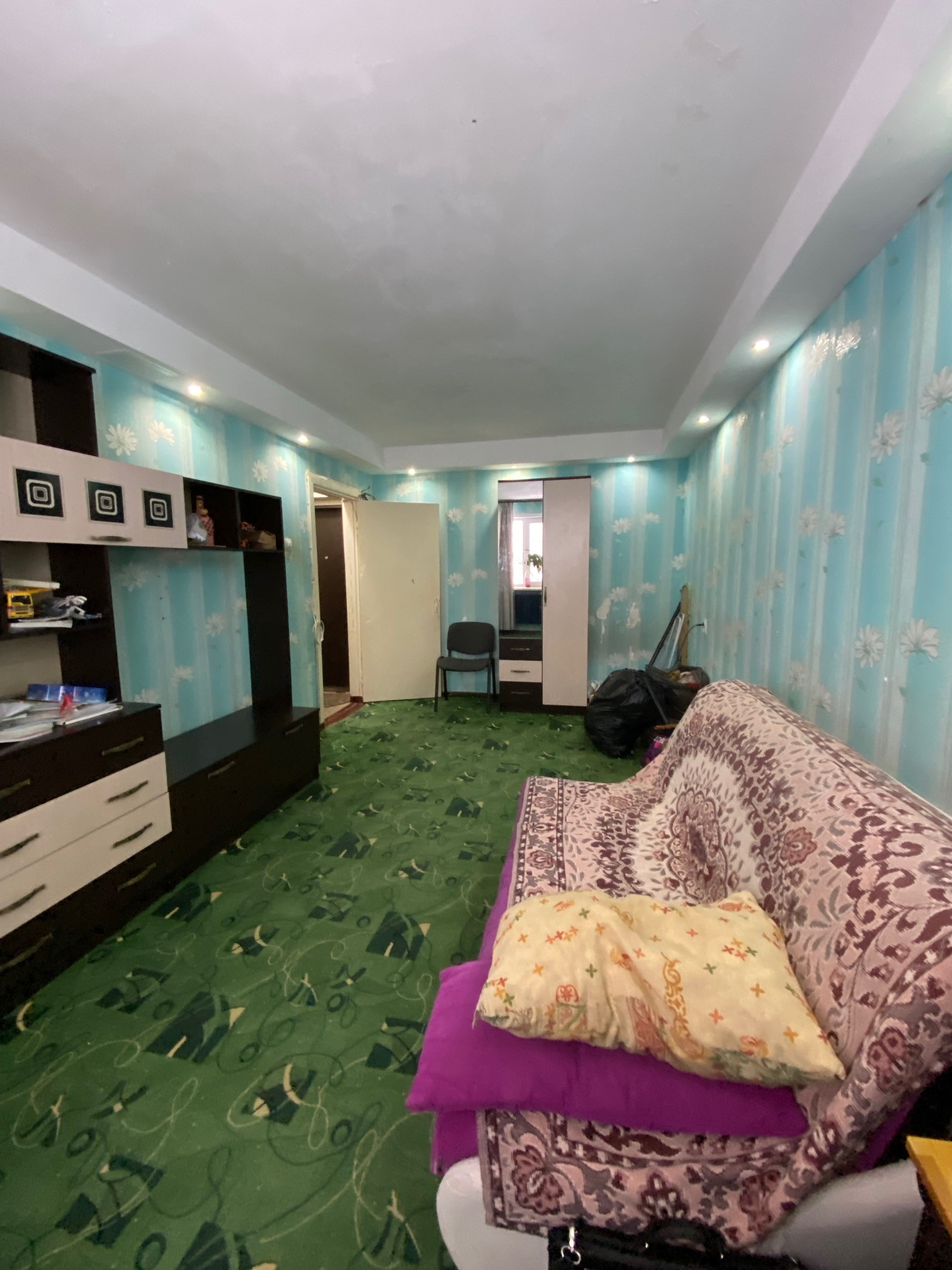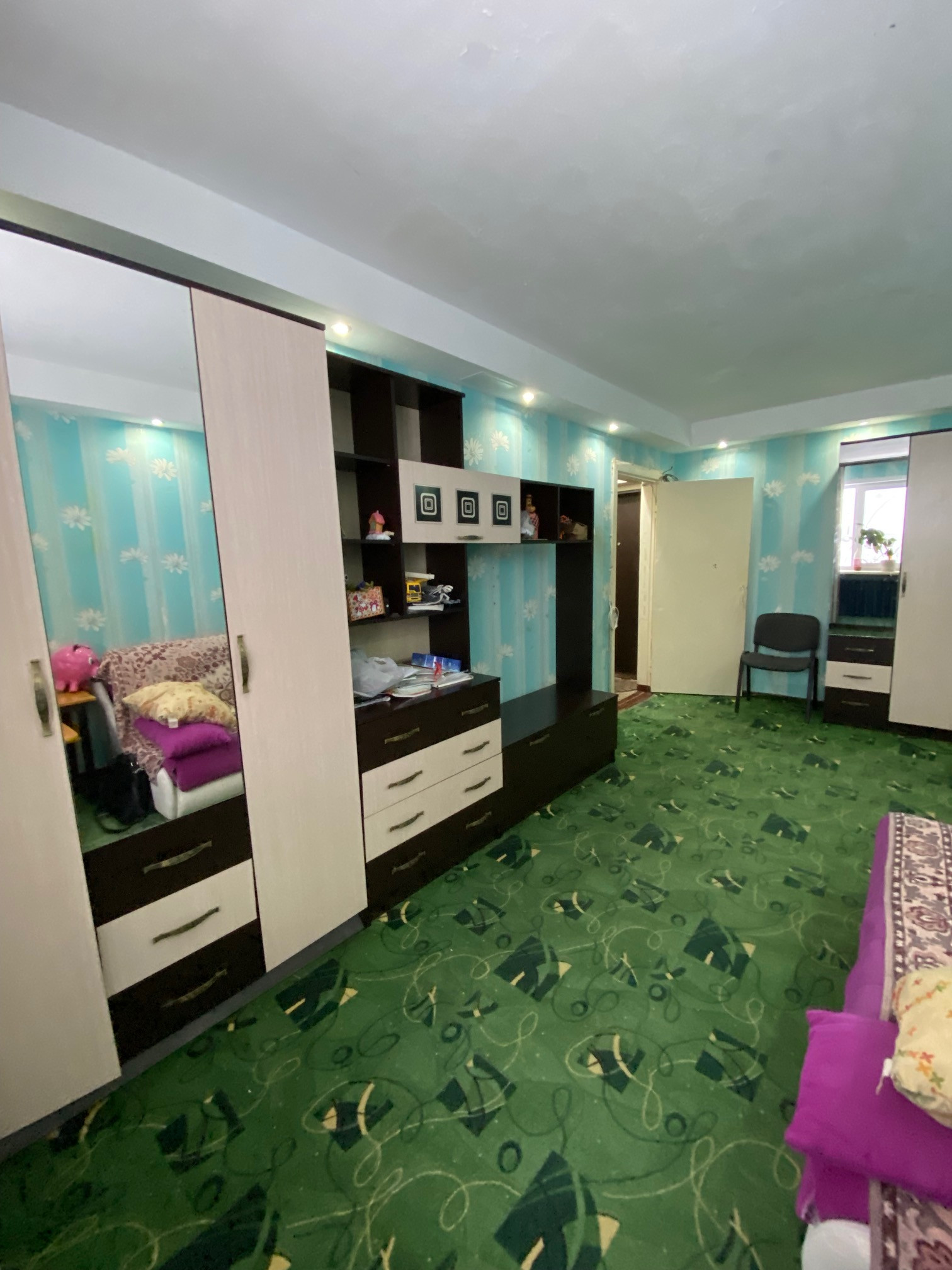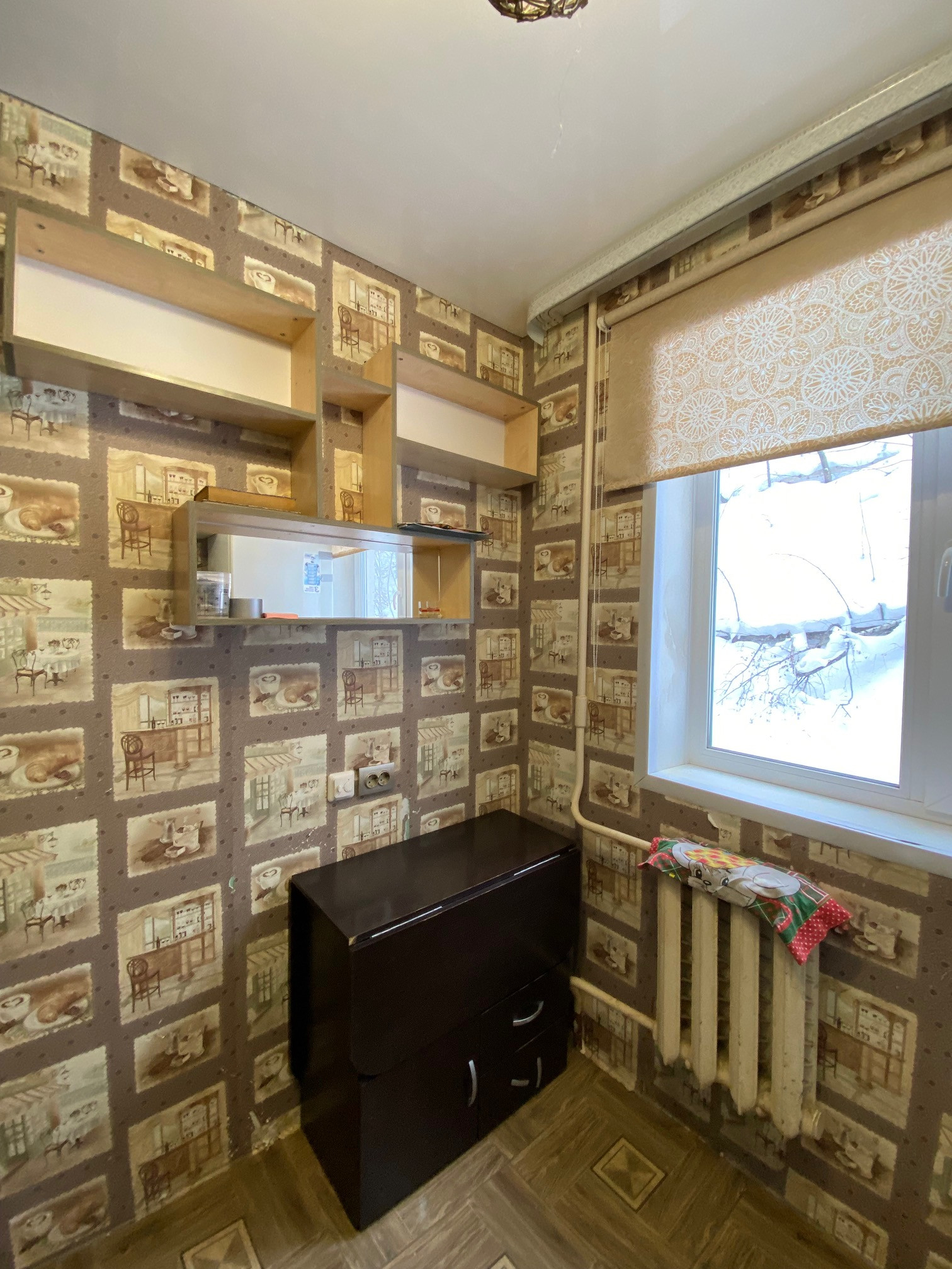 В стоимость входит кухонный гарнитур с подключенной варочной поверхностью (380 В.), полки на кухне и шкаф в ванной.