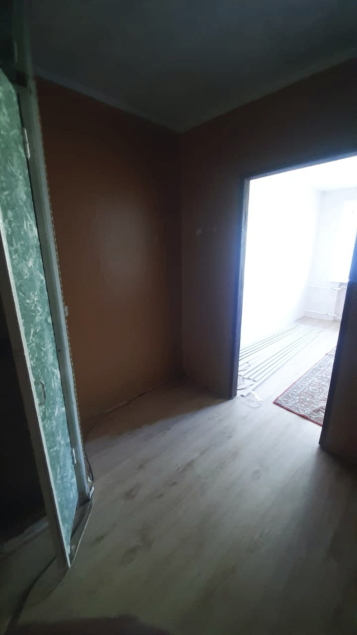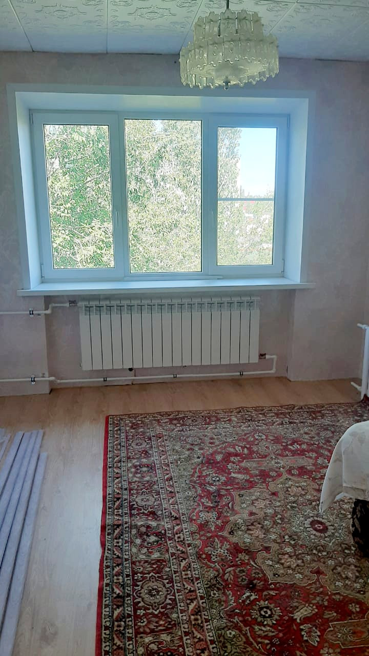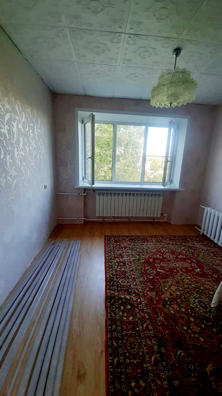 Светлая теплая большая комната. Окно пластиковое (выходит на школу), полы - ламинат, жилая зона отделена перегородкой от входа. Свободна.