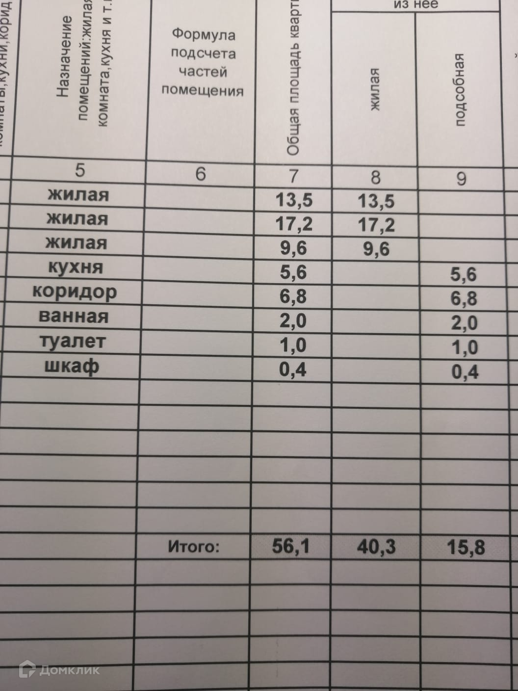 Общая площадь 56.1 м2