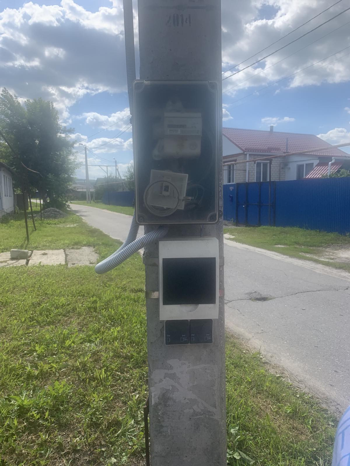 Установлен электрический счетчик на столбе.
