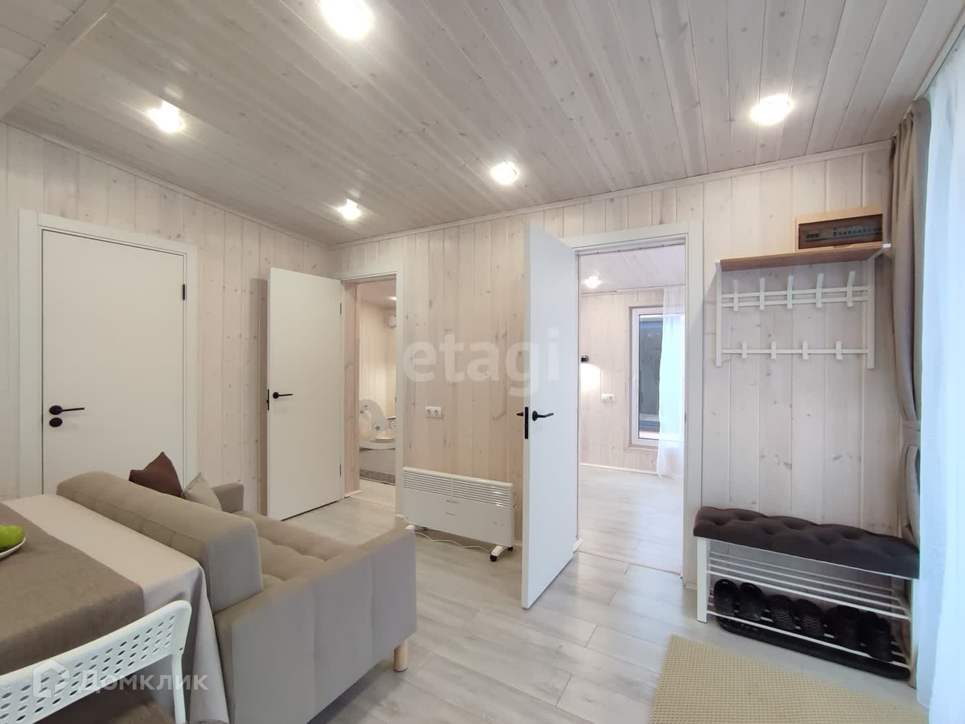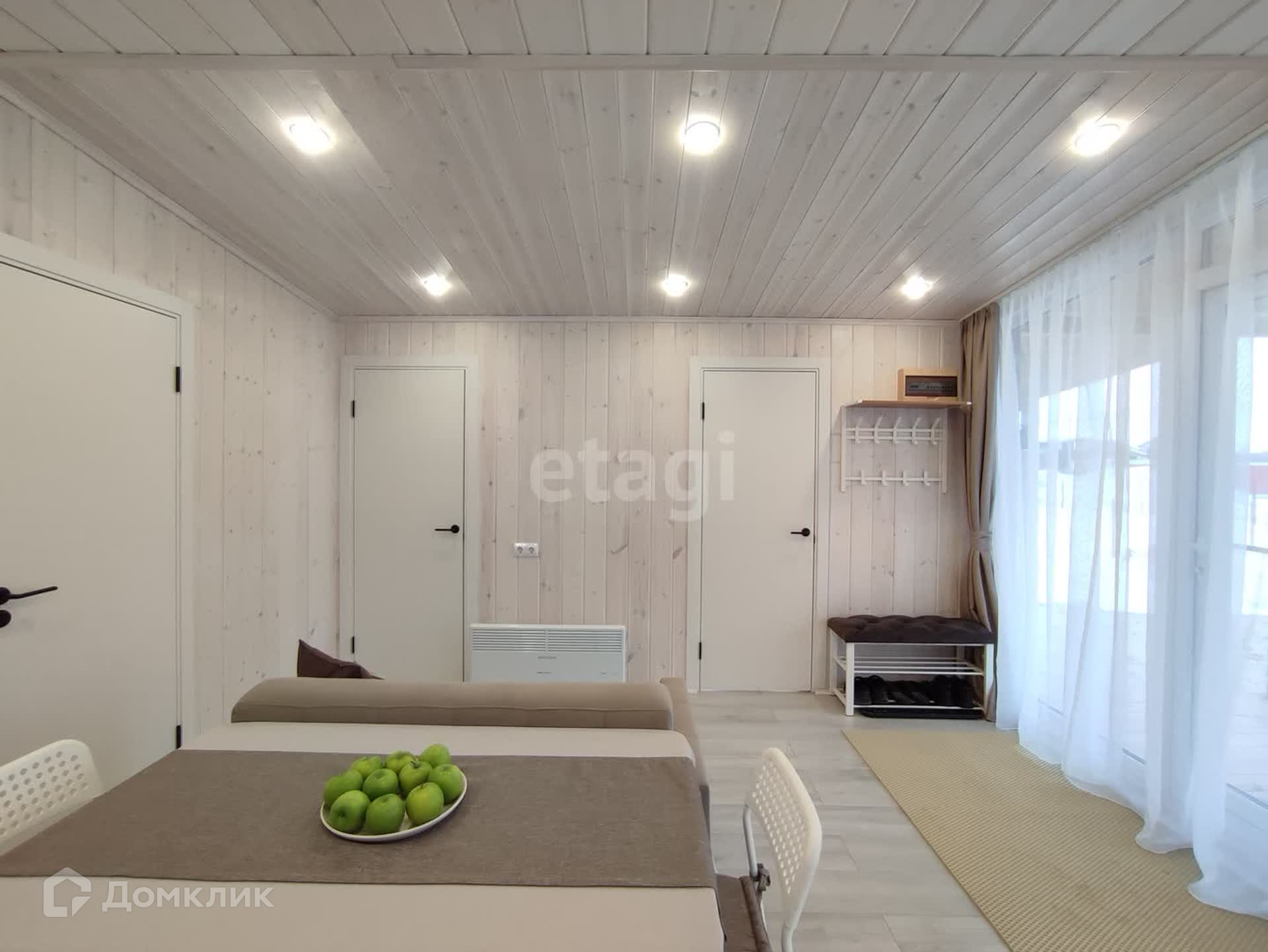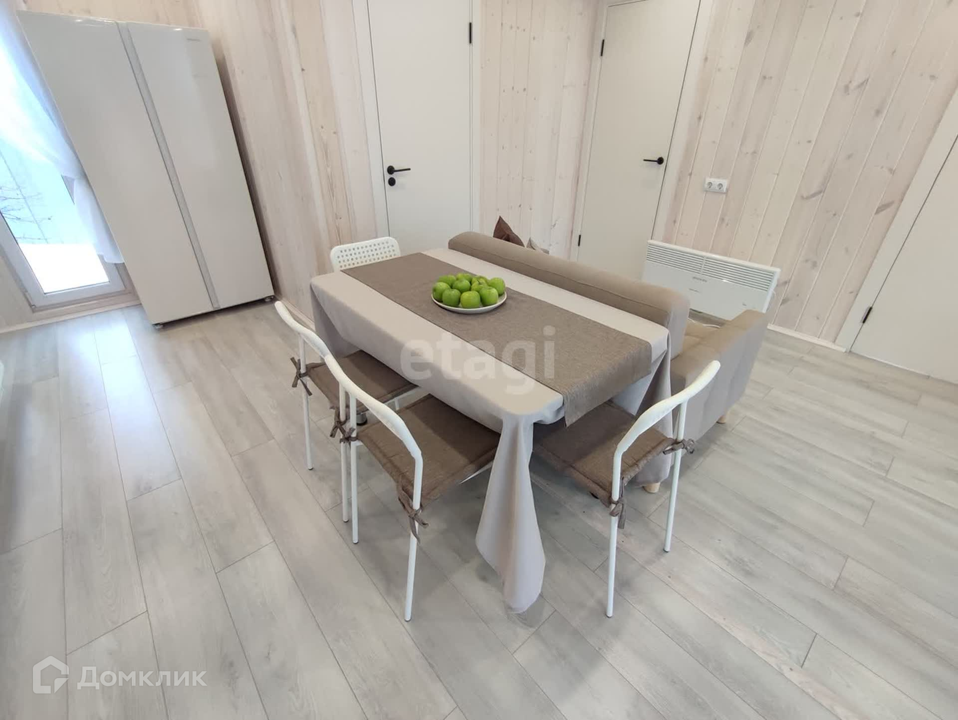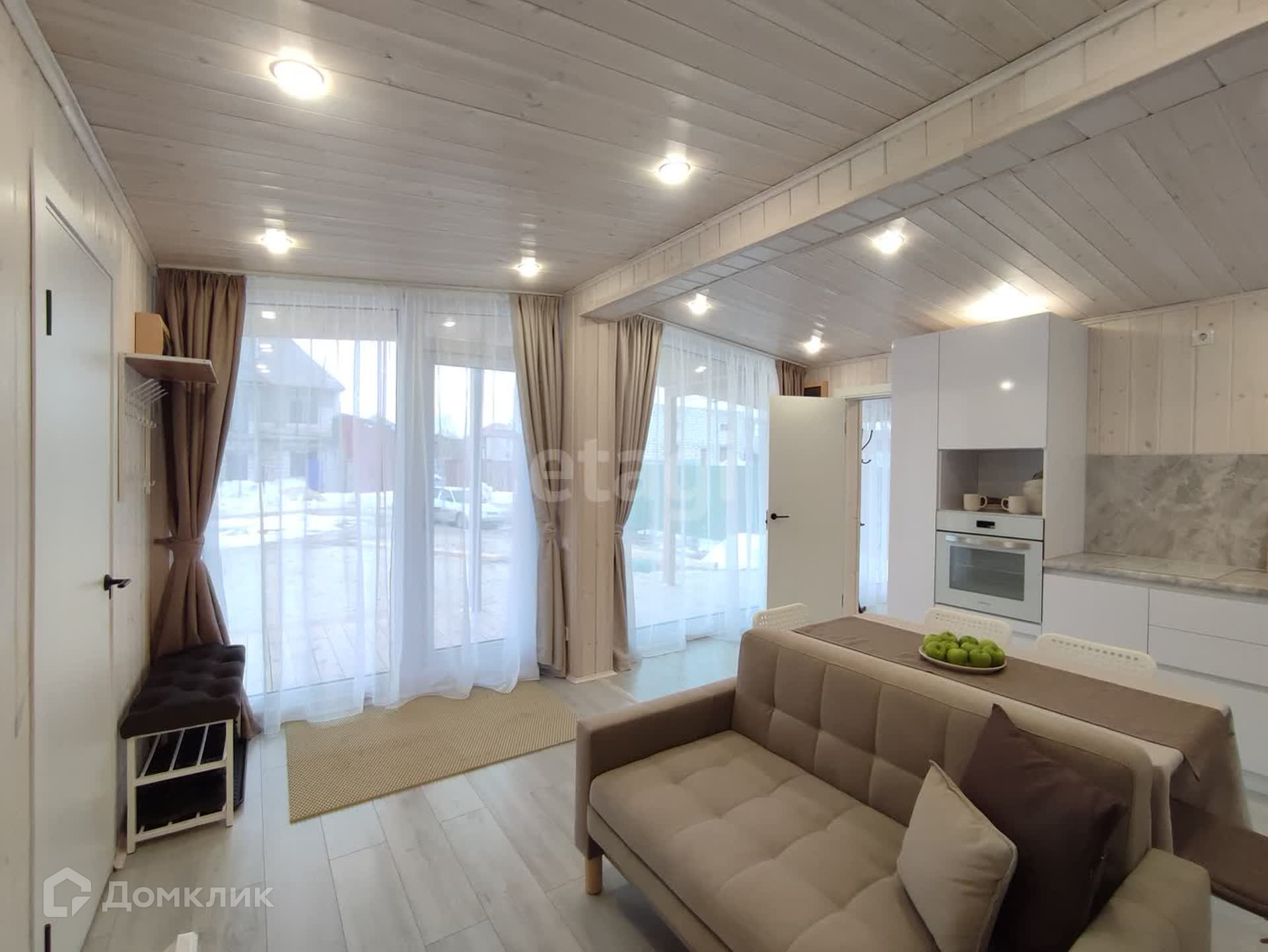 Большая кухня-гостиная с обеденной зоной и панорамными окнами даёт ощущение пространства и непременно станет излюбленным местом сбора всей семьи. Три спальных комнаты, в одной из которых по желанию можно сделать рабочий кабинет или библиотеку. Отдельная гардеробная в гостиной позволит грамотно организовать хранение вещей с максимальным удобством и сэкономить жилое пространство. Санузел в доме имеет правильную форму, где можно развернуть всю сантехнику так, как будет удобно. В доме выполнены электрическая и сантехническая разводка с использованием только качественных материалов. Установлен септик с биологической очисткой, не требующий ежемесячного обслуживания. Сам участок находится в собственности. Добраться до города можно за 5 минут, т.к. дом находится всего в трех километрах. Новый дом с хорошими дружелюбными соседями ждёт Вас, звоните!