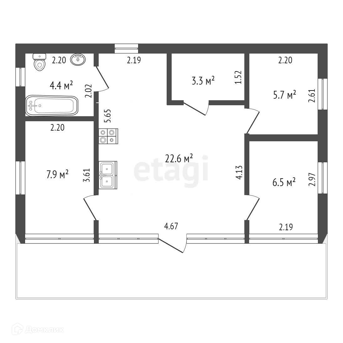 Общая площадь 50.4 м2
