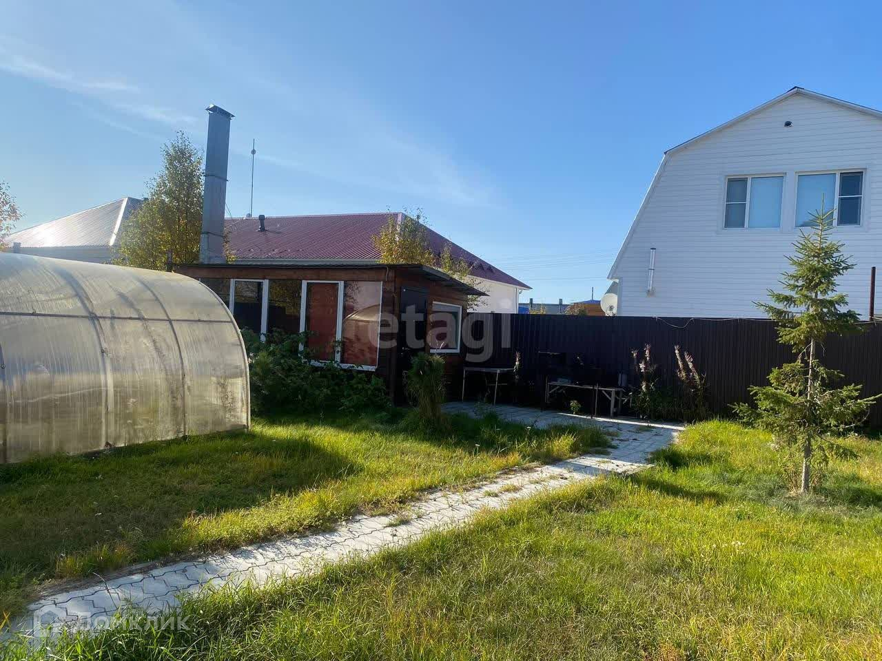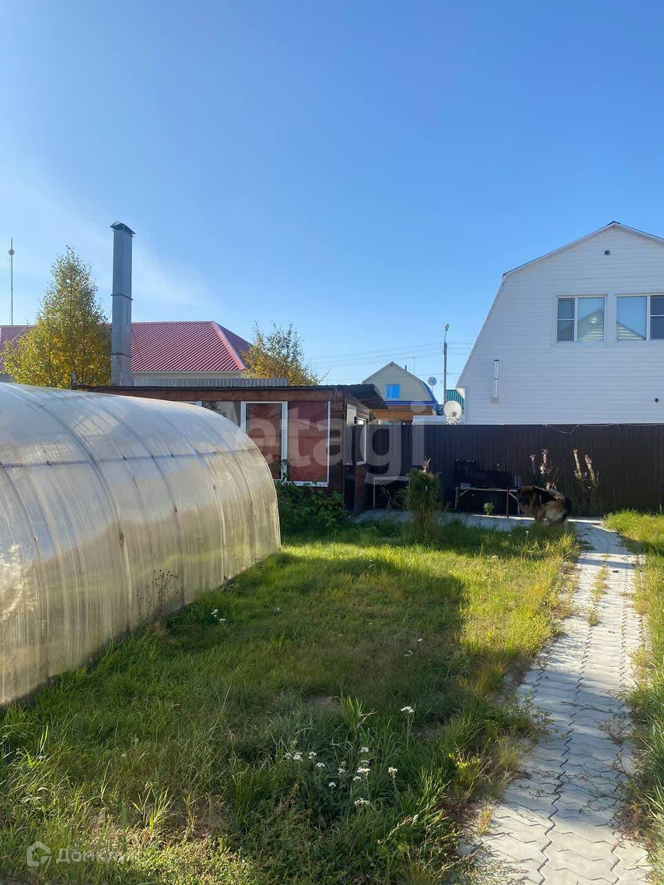 Участок огорожен забором из профнастила. Территория участка облагорожена, установлен парник.