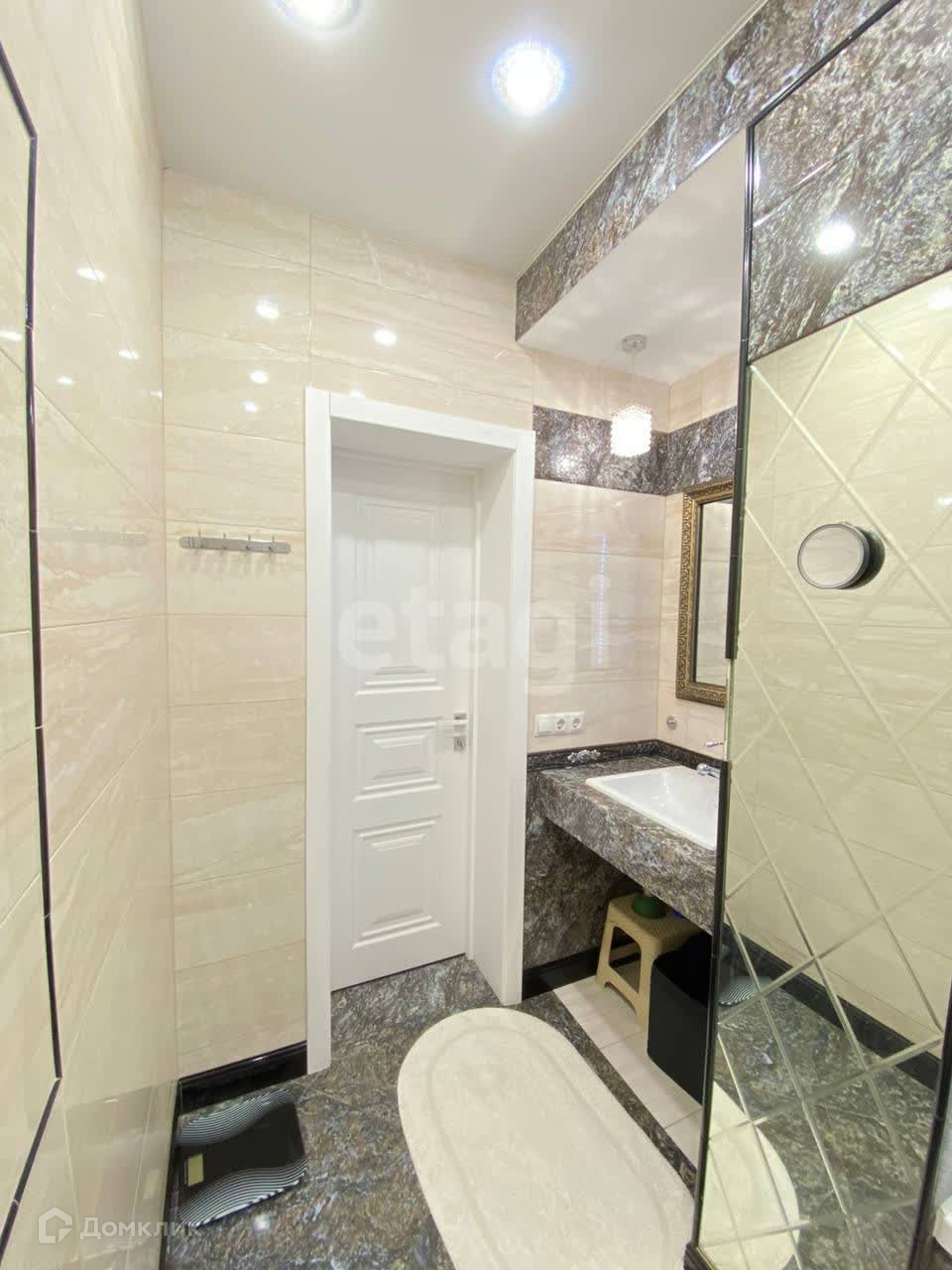 Первый этаж включает в себя: прихожую, просторный зал, кухню, гардеробную, санузел и бойлерную. По всему периметру первого этажа установлены теплые полы. Также на первом этаже дома находится баня, с комнатой для отдыха и душевой. Баня электрическая. Внутренняя отделка бани - дерево. Второй этаж включает себя: три спальни, просторную гардеробную, санузел, холл.