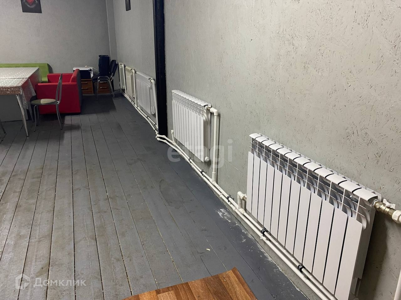 Стены обшиты ОСБ плитой, пол, потолок обшит пенопластом 40мм, напольное покрытие заменено, полностью покрашен влагозащитной краской Тиккурила