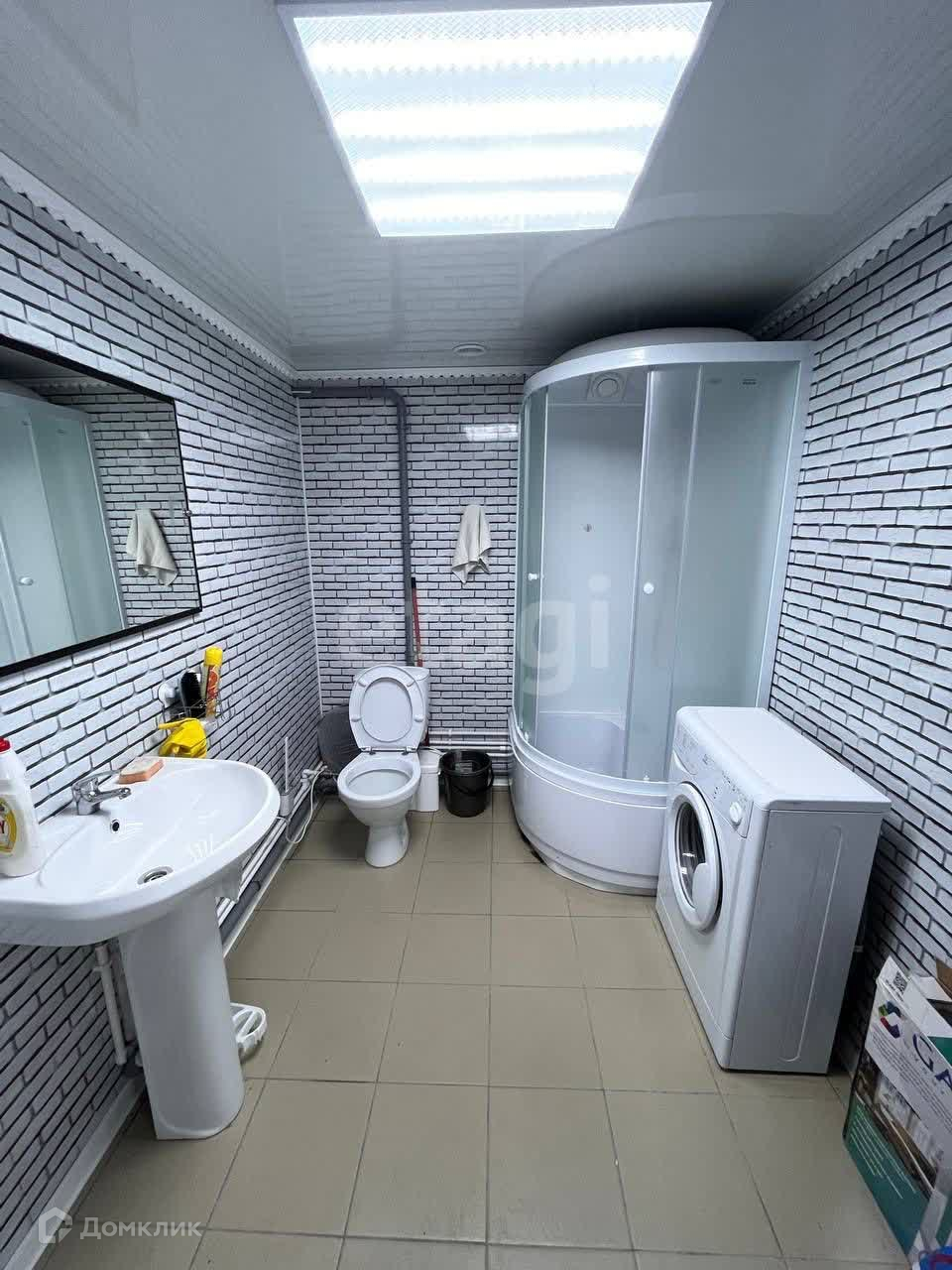 Проведены все коммуникации (сантехника, электрика система вентиляции), установлен туалет, душевая кабина 900х900, умывальник, стиральная машина.