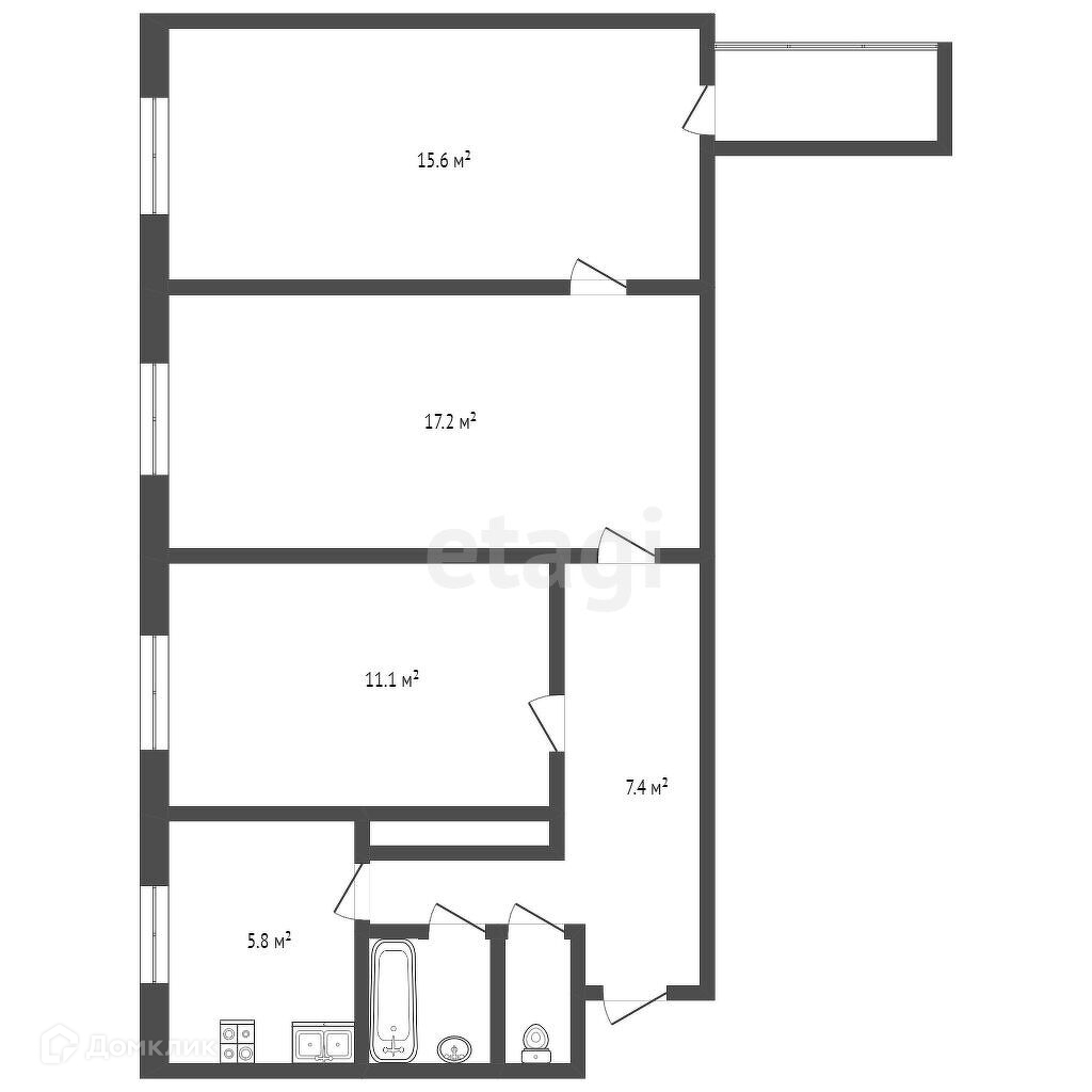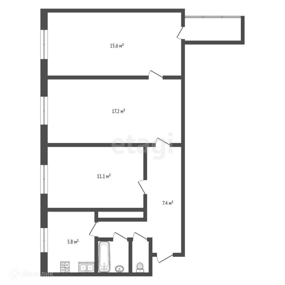 Балкон, лоджия 1 балкон