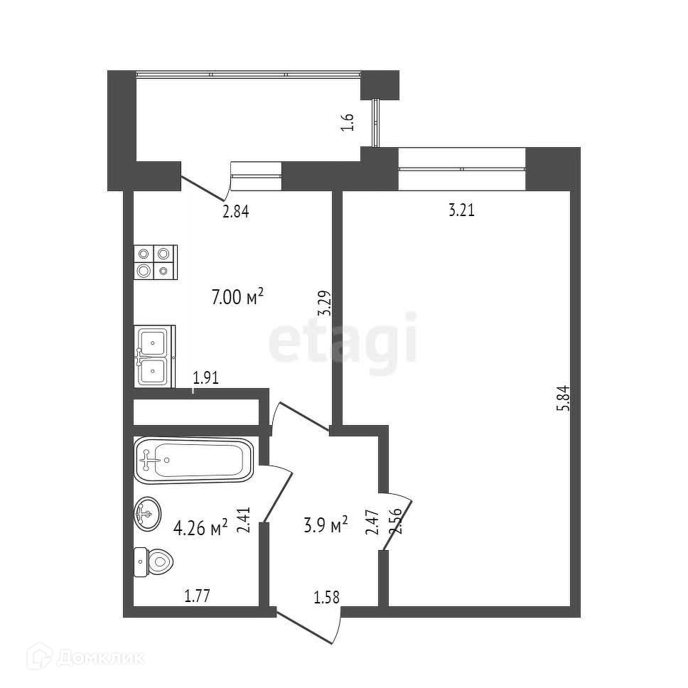 Балкон, лоджия 1 балкон