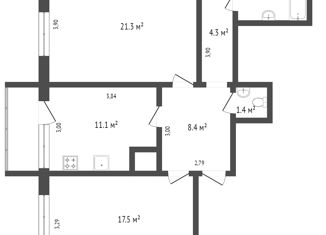 Общая площадь: 42.1 м2