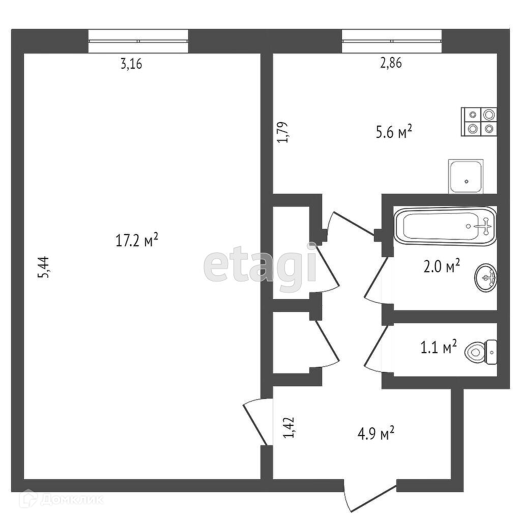 Общая площадь 34 м2