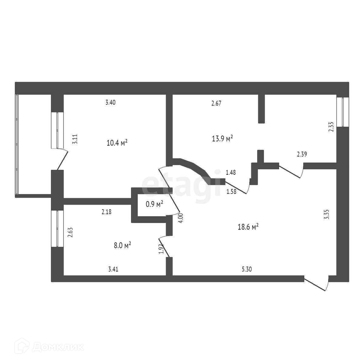 Общая площадь 48.5 м2