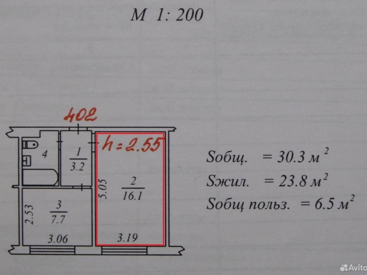 Жилая площадь 16 м2