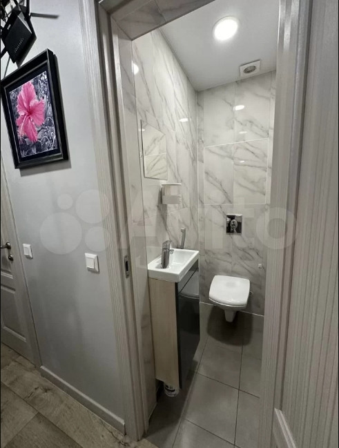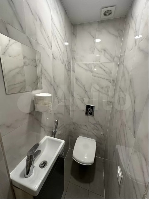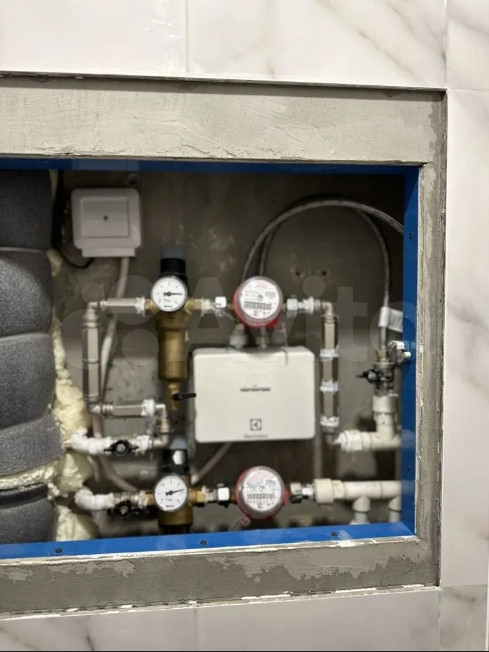 В туалете установлена «инсталляция», спрятаны все коммуникации в стену, там же установлен проточный водонагреватель, установлены фильтры очистки воды при вводе.