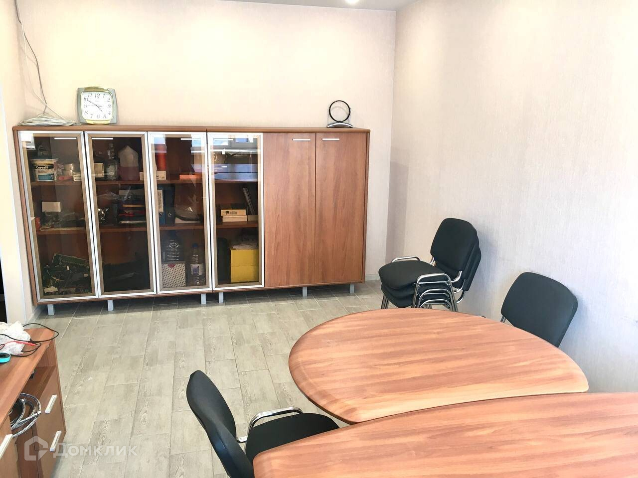 Есть мебель, офисные шкафы, совмещенный санузел.