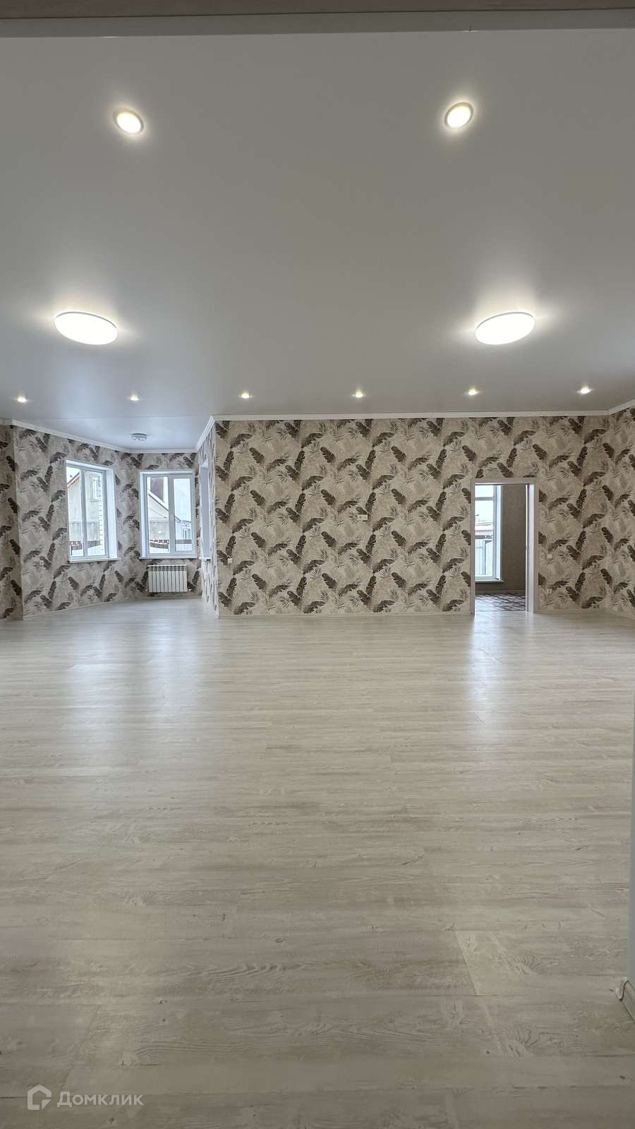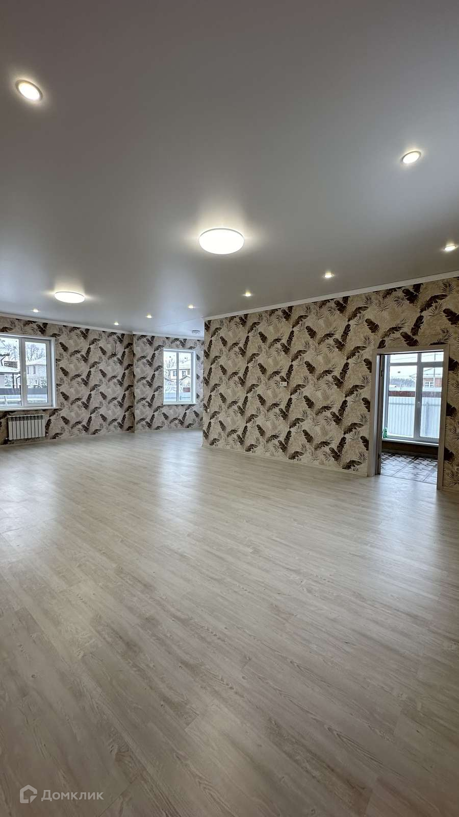 3 изолированные комнаты, 2 с/у, просторная кухня-гостиная, холл и котельная.