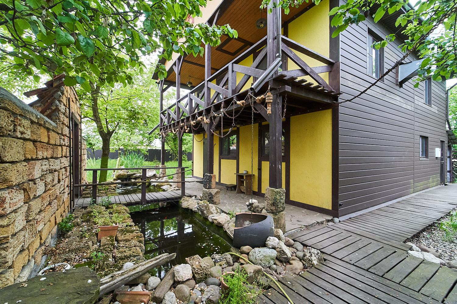 На участке пруд с карпами, стоят фильтры. Забор из крымского песчаника. Строили для себя, продаем срочно в связи с переездом.