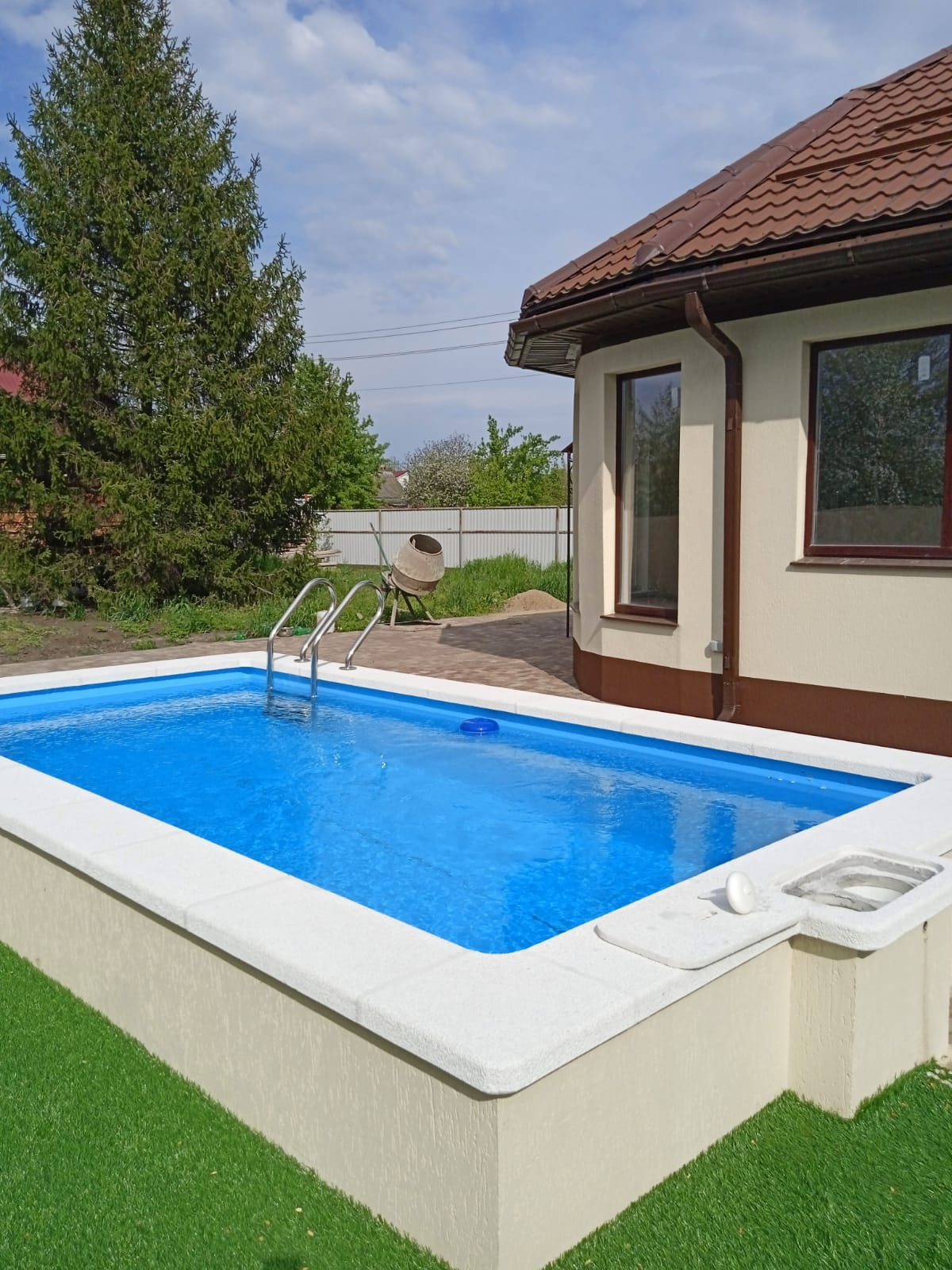 Во дворе  Подогреваемый Бассейн 5м*3м*1.5м с подсветкой. Для удобного обслуживания построена Котельная с узлами и фильтрами для очистки воды.