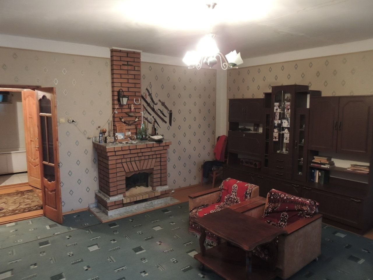 В квартире в гостинной есть кирпичный рабочий камин!