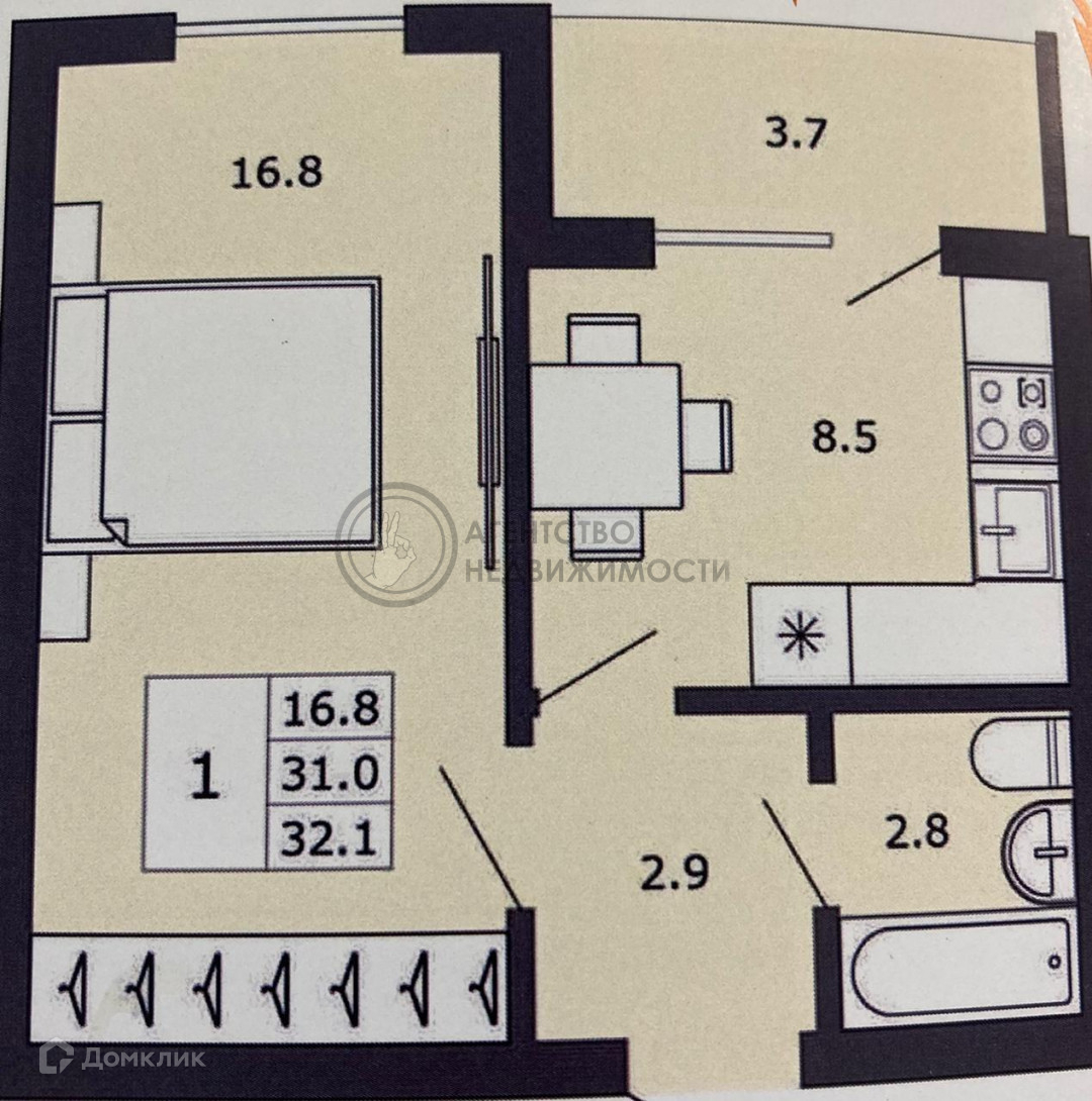Общая площадь 31.9 м2