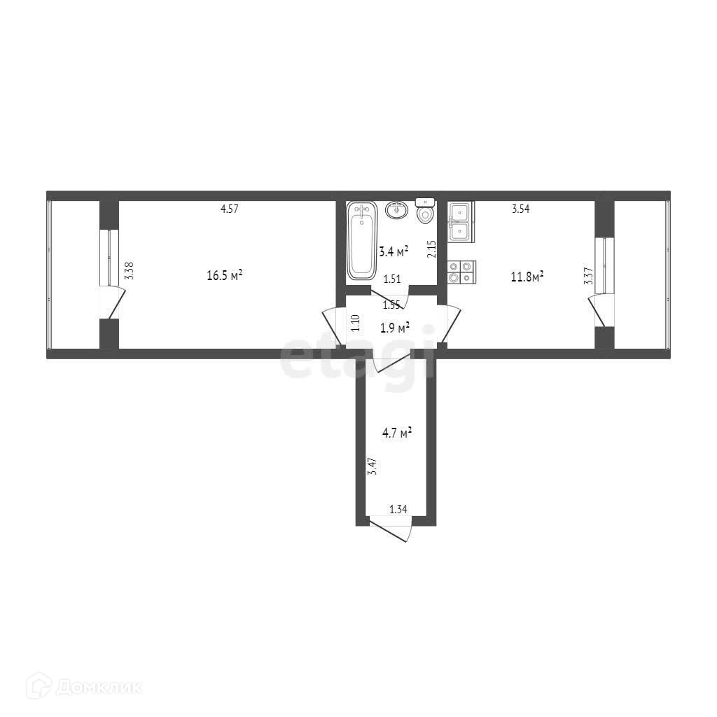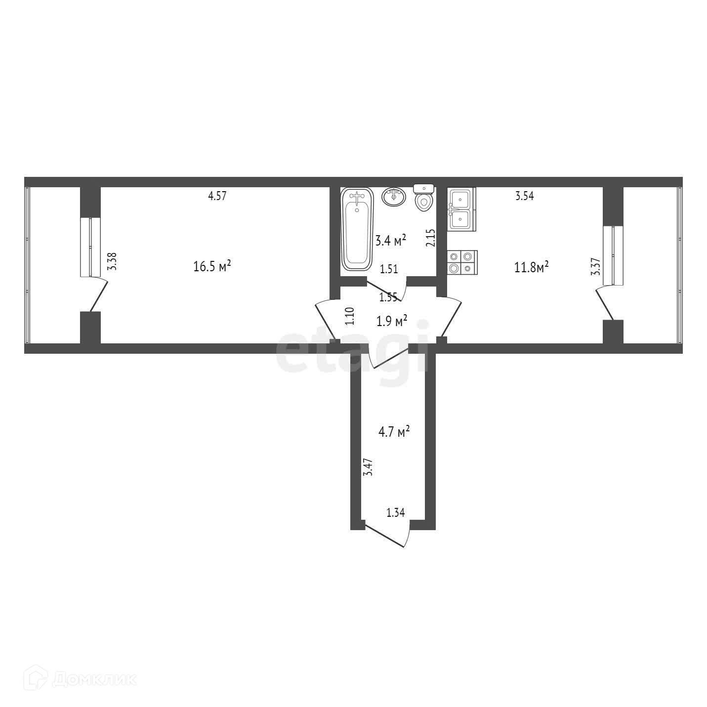 1-комнатная квартира, 38.4 м2, этаж 1 / 2, на продажу в Нягани, Речная улица, 167