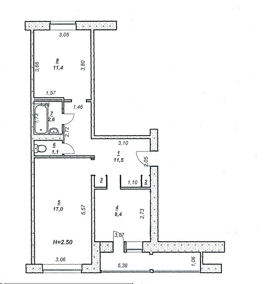 Высота потолков 2.5 м