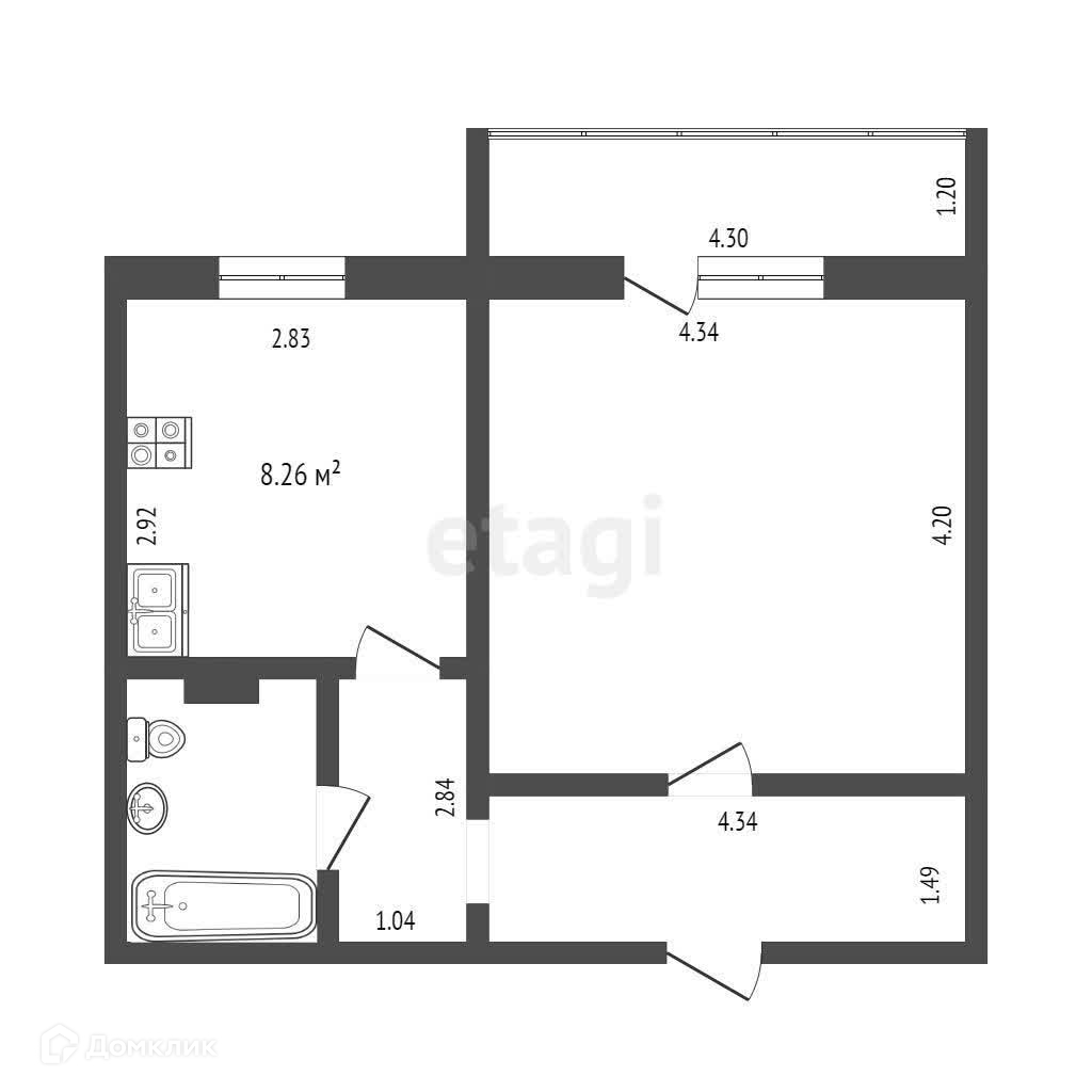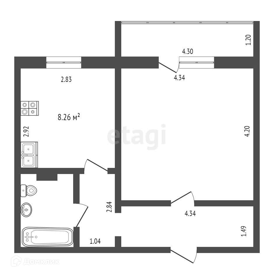 Площадь кухни 8.26 м2