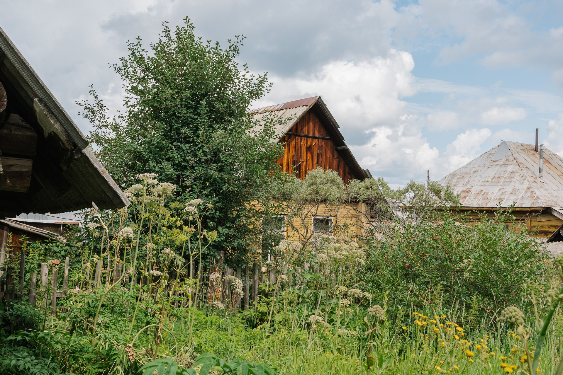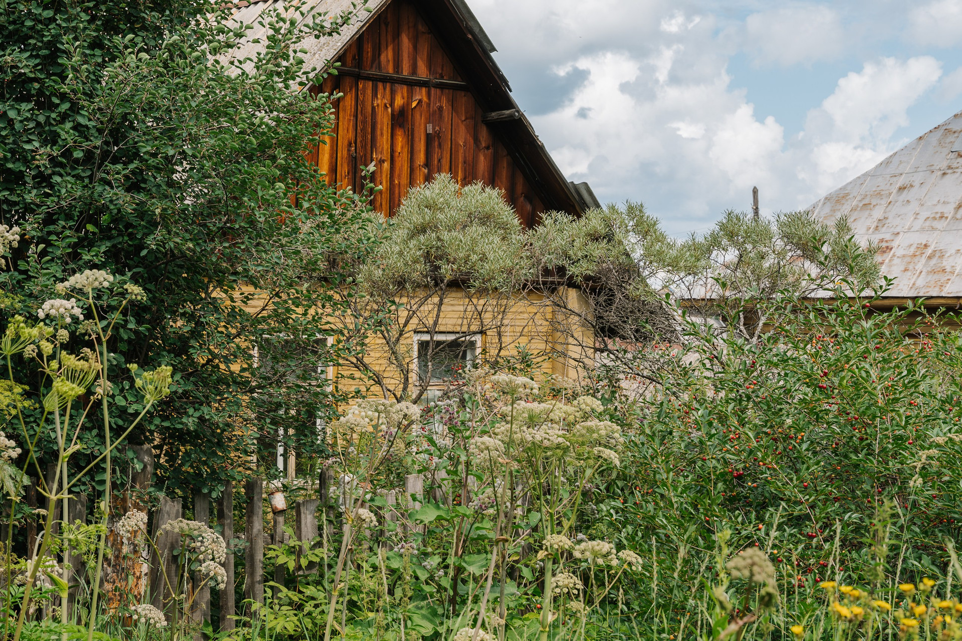 На участке есть различные плодовые деревья и кустарники