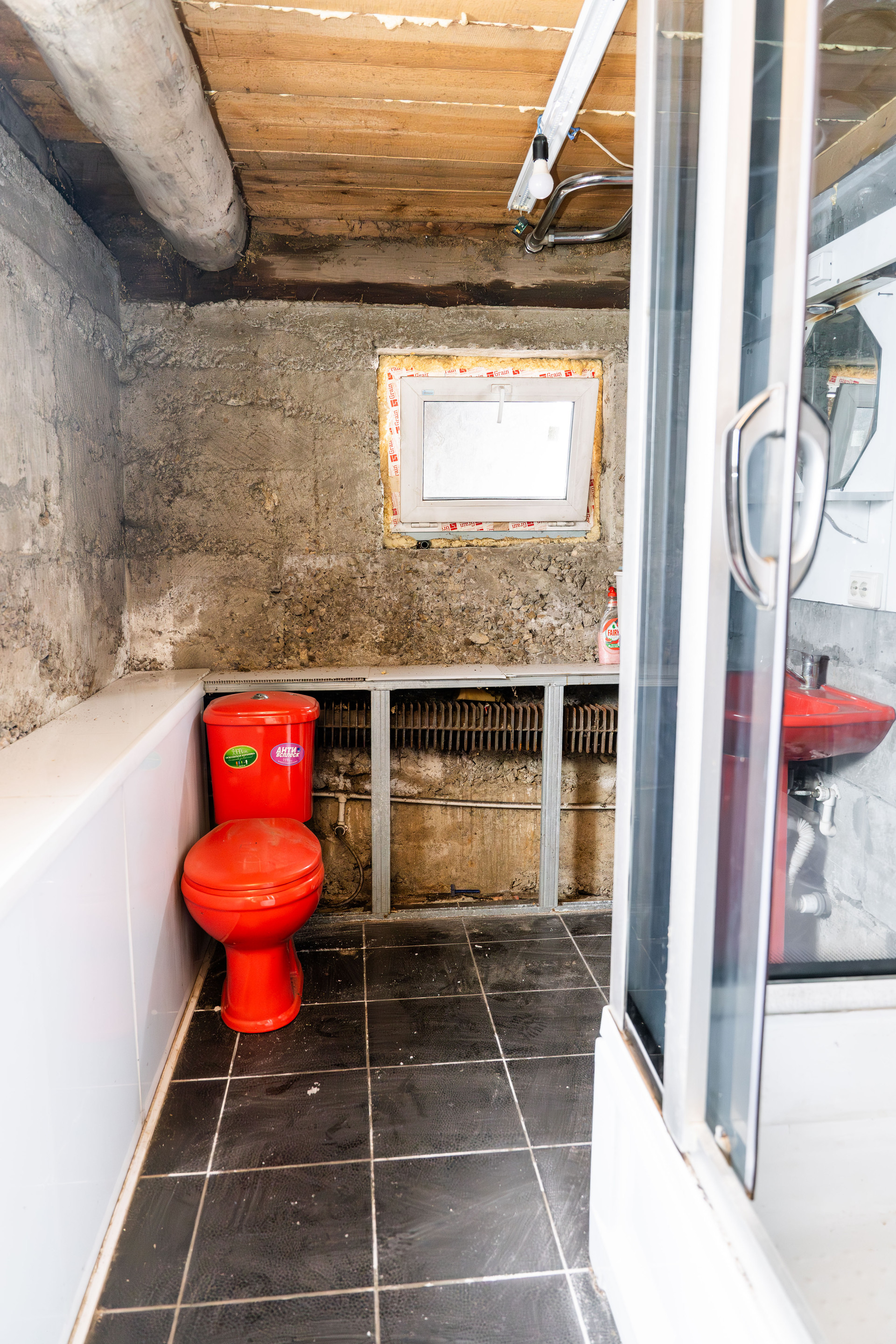В цокольном помещении санузел с большой душевой кабиной, просторная кухня-гостинная, коридор, котельная с установленным твердотопливным котлом. Есть водонагревательный бак на 100 литров. Санузел требует завершения ремонта.