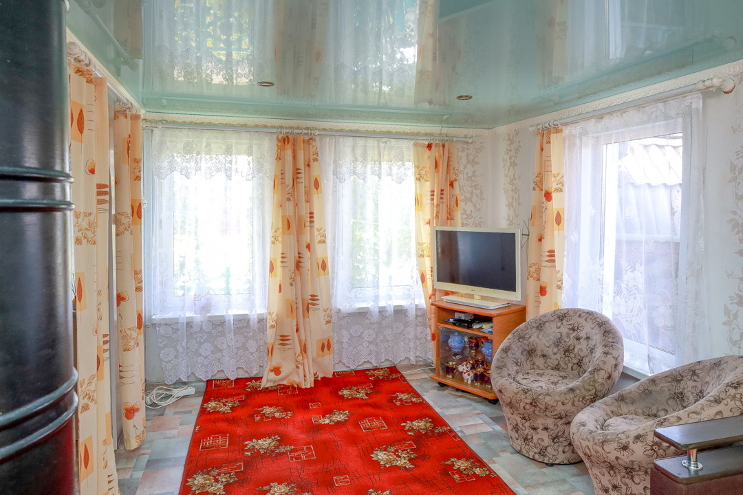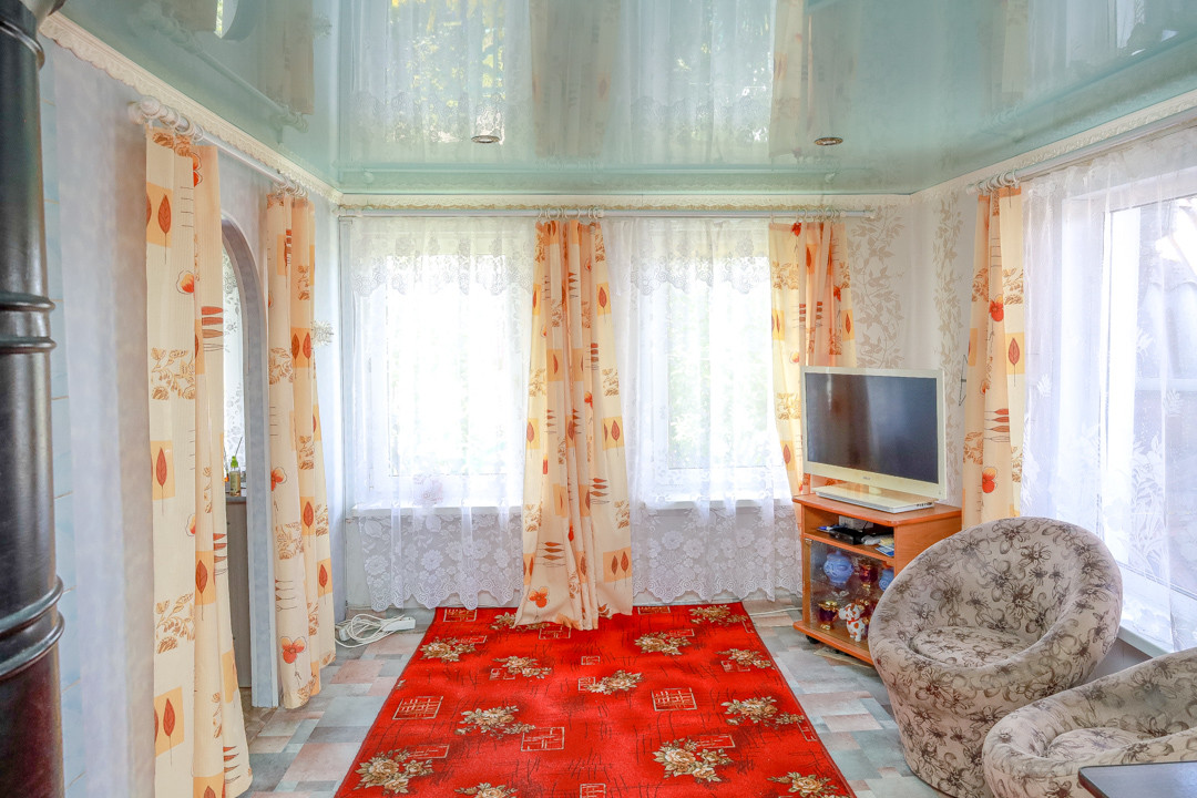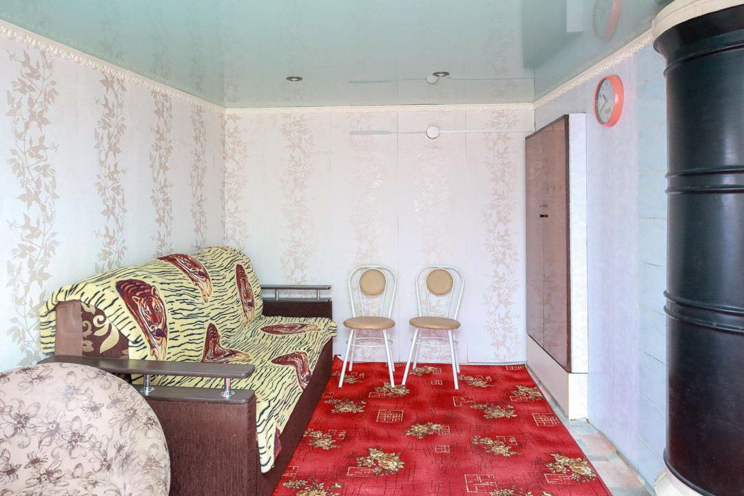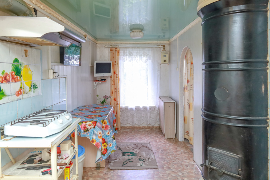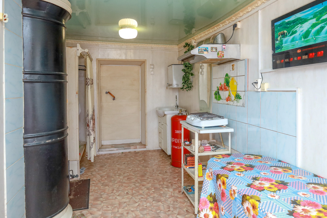 Жилая площадь 46,9 кв.м, участок 13 соток. Имеется просторная прихожая, из которой есть выход в теплый санузел и выход в основной дом. В доме кухня-гостиная и изолированная комната. В санузле установлен гидро аккумулятор для скважины. Полы устланы линолеумом, отопление печное. Продается с мебелью и техникой, что позволяет сразу заехать и жить с минимальным набором удобств. Имеется подпол для хранения солений и варений.
