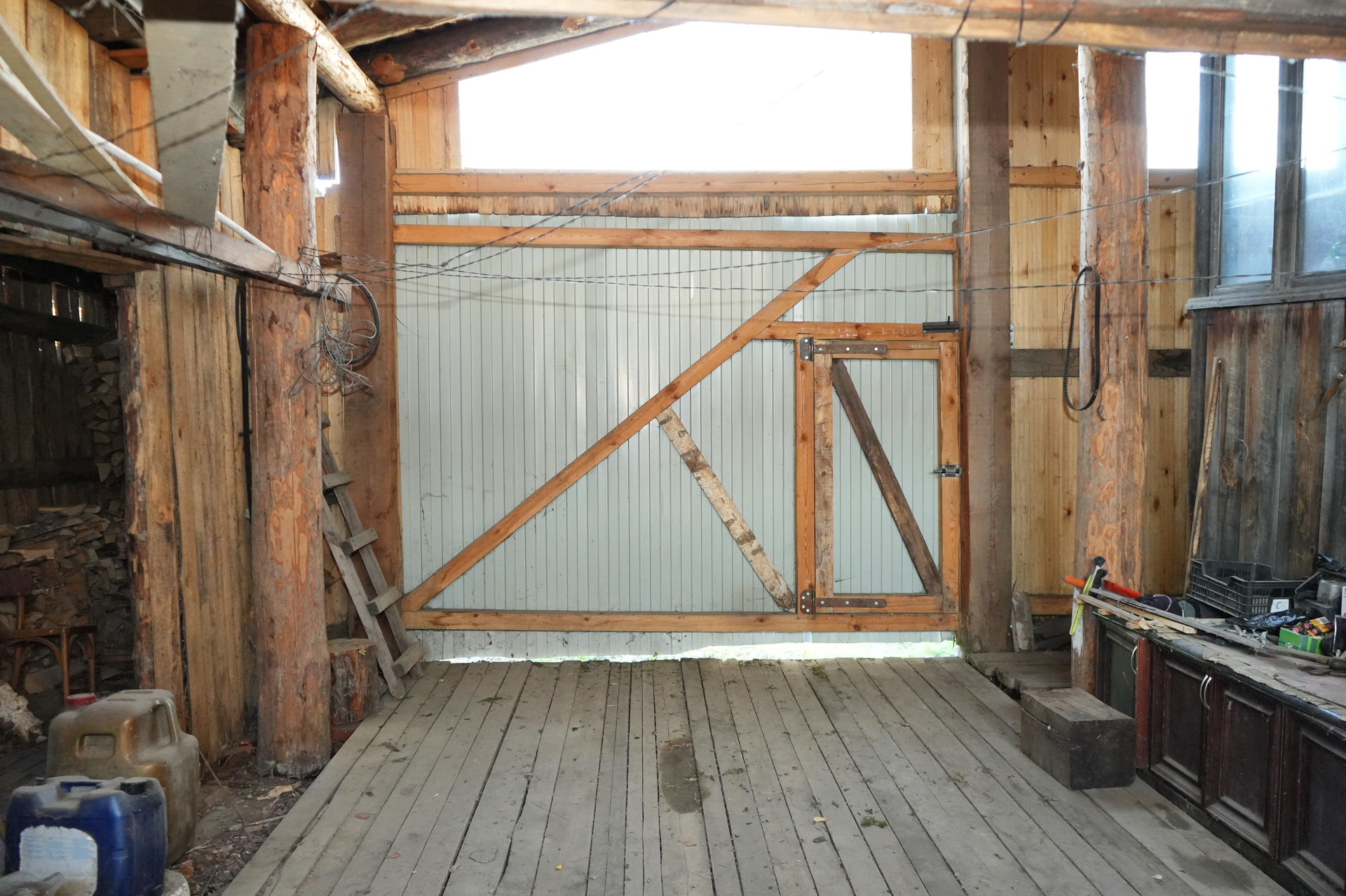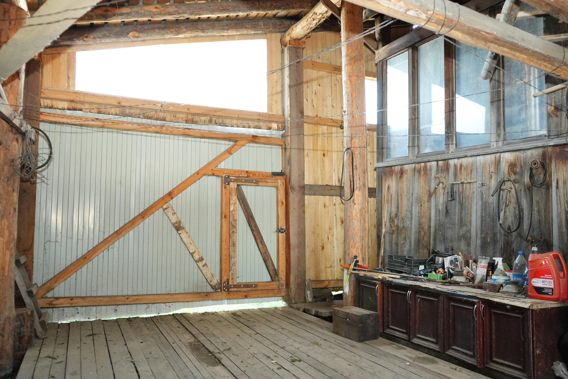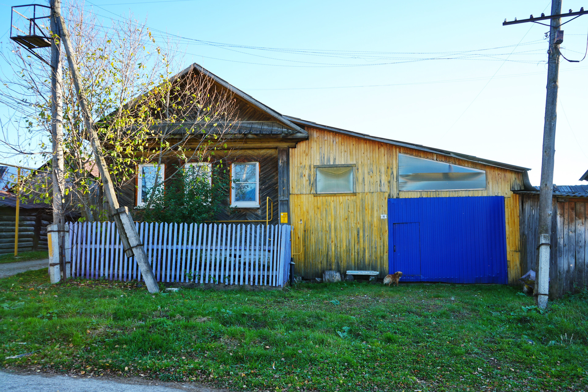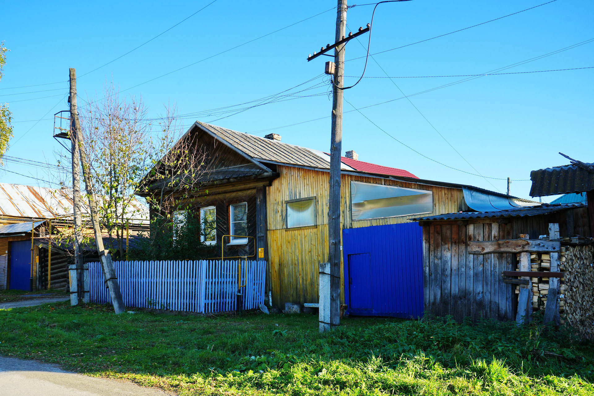 У дома имеется просторный крытый двор, палисадник, а также подсобные хозяйственные помещения. Крыша дома покрыта профлистом. На участке площадью 109 квадратных метров расположена канализация и возможность подключения к газовому снабжению, так как улица газифицирована и стояк газа выведен к дому. Высокий крепкий фундамент, сруб у дома ровный.