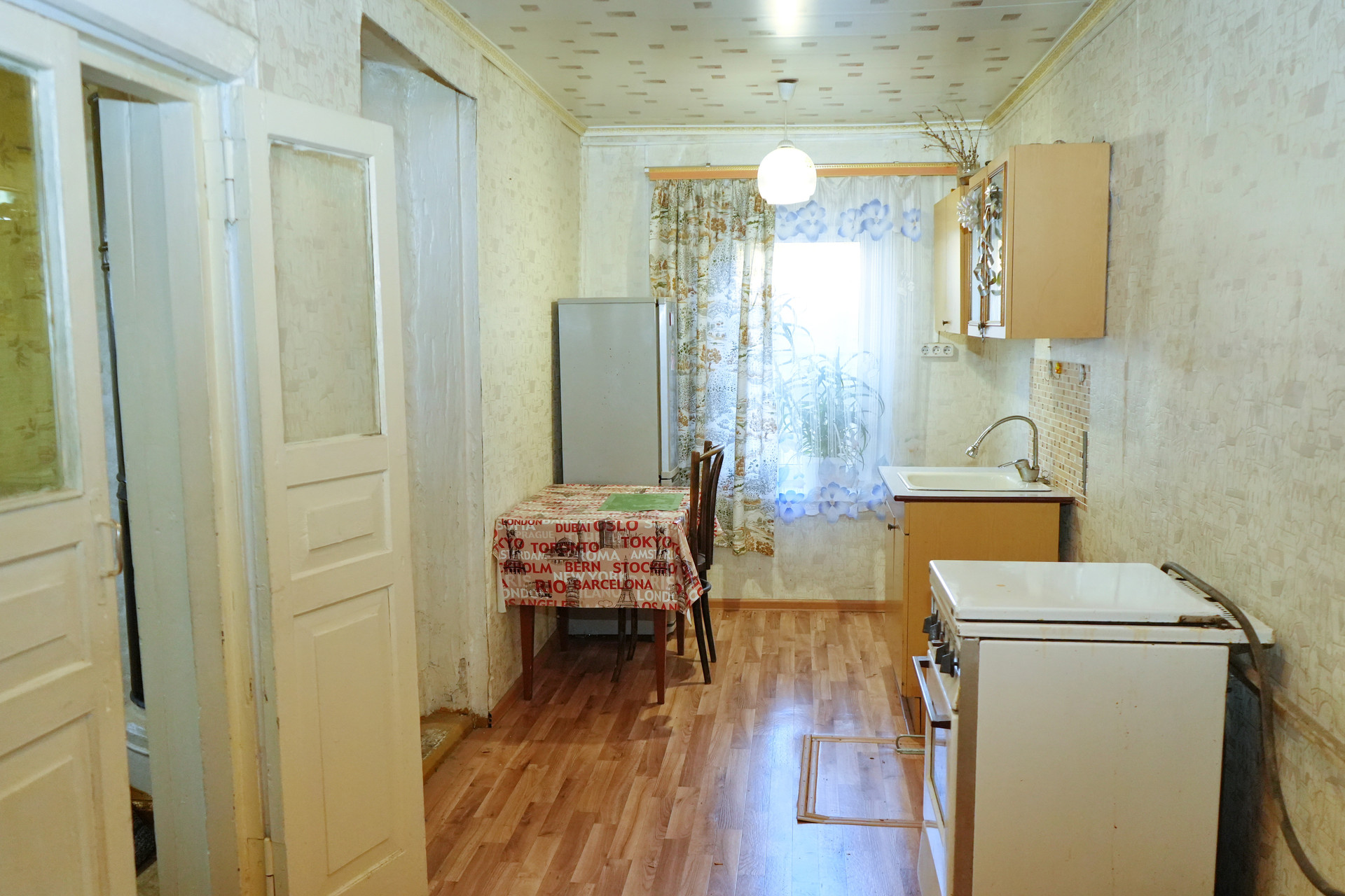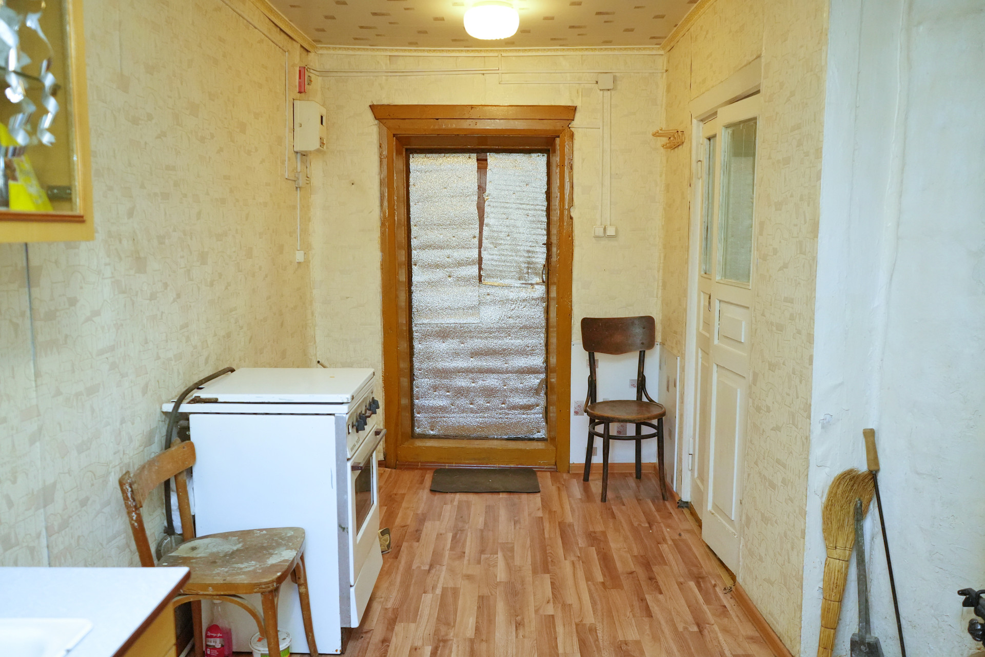 Квартира общей площадью 30,5 квадратных метров. Помещение светлое и уютное, с высокими потолками и качественными тройными стеклопакетами с москитными сетками. Полы устелены линолеумом, отопление - печное. В доме сделана разводка новой электрики. Водоснабжение центральное. В доме есть кухня-гостиная, зал и смежная комната, а также подпол для хранения солений и варений.