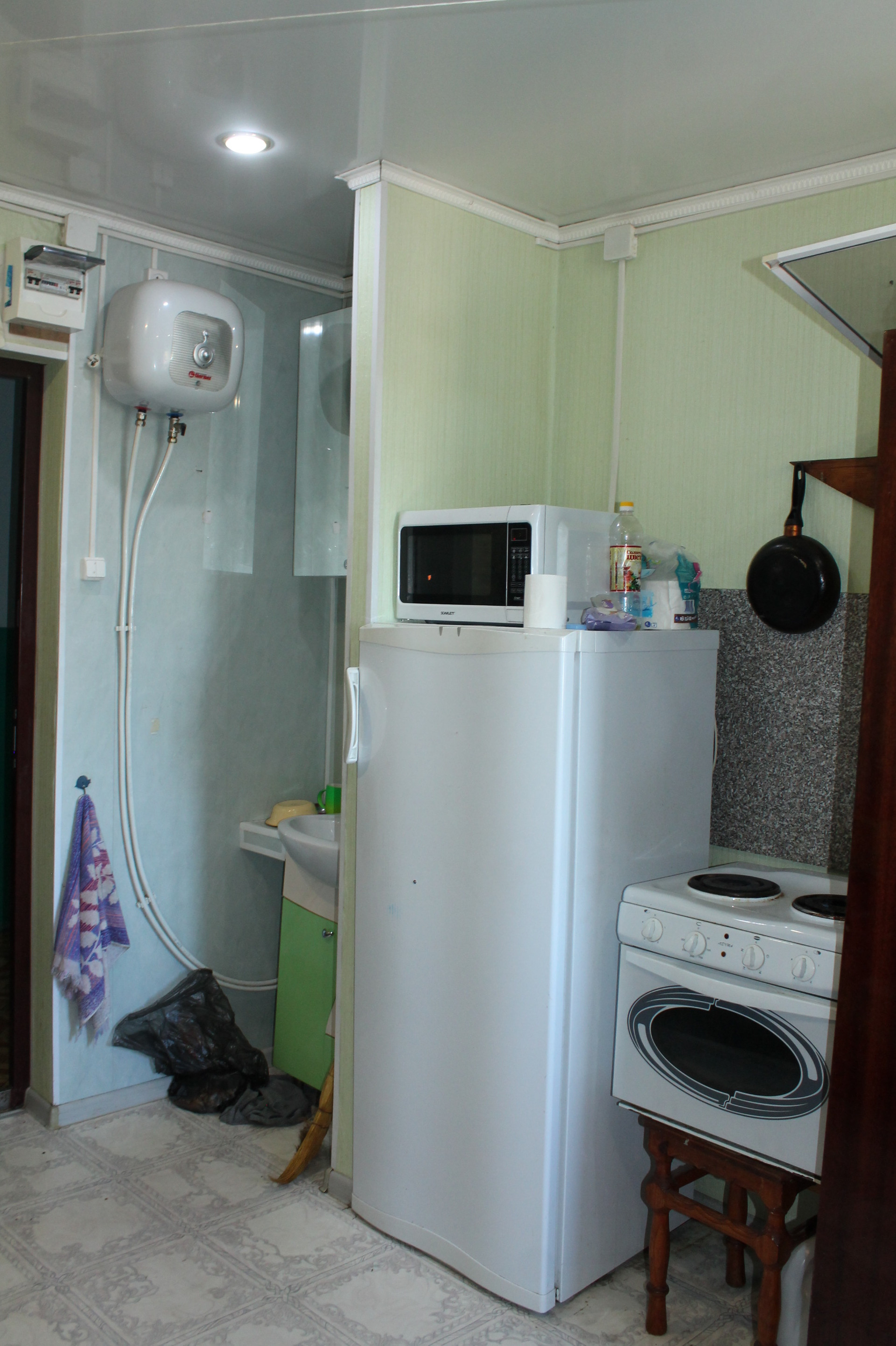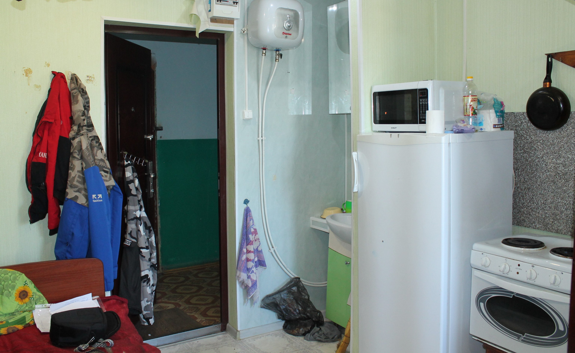 Вода проведена в комнату, обогреватель.